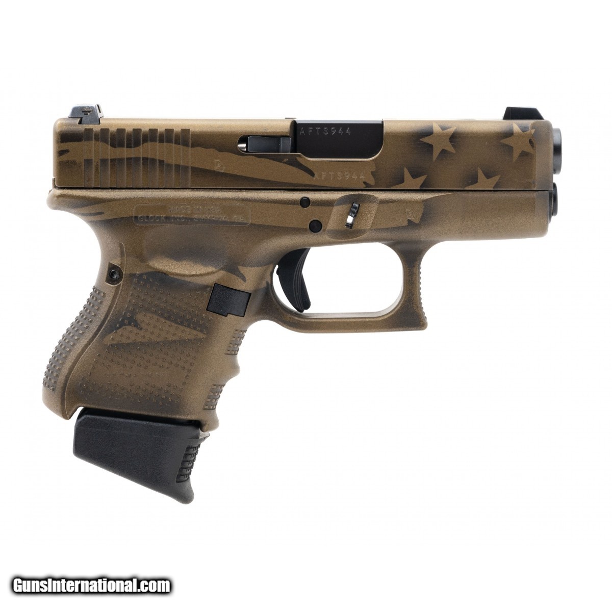 Description: " SN: AFTS944. Modern production, .40S&W with a 3.43"" barrel. Bore is excellent. Subcompact polymer pistol in bronze finish with American flag motif. Overall excellent condition. Comes with box and two extra magazines. SOLD |