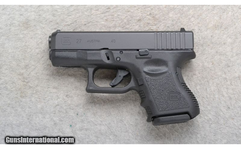 Description: This Glock Model 27 is a right hand semi-auto pistol in .40 S&W Cal. It has a 3.25 inch barrel with a rear serrated slide. A blade front sight and notch rear sight with white highlights. The grip is a textured black polymer with a finger groove. .40 S&W SOLD Chambers: 9 round magazine. Metal Condition: Excellent. Bore Condition: Excellent. Barrels: 3.25 inch barrel with a rear serrated slide. Weight: 22 oz. Sights: Blade front. Notch rear. White highlights. Item Location: Richfield, WI |