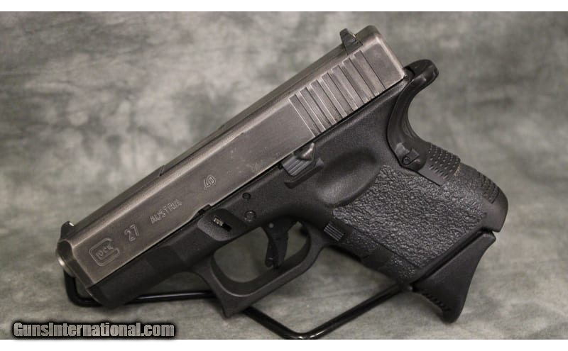 Description: Glock 27 40 caliber with the original box and 2 9 round magazines in good condition. Slide and barrel have had most of the blueing taken off. .40 S&W SOLD Metal Condition: Good Bore Condition: Bright & Shiny Barrels: 3.43 Weight: 21.34 oz Sights: "Front White DOT, Rear White U Item Location: Auburn Hills, MI |