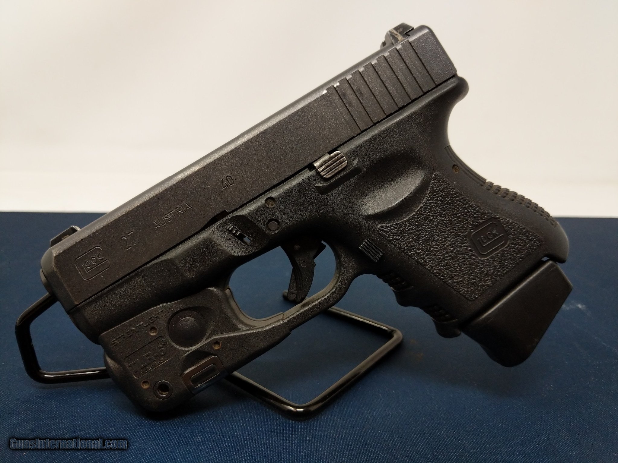 Description: Guns Listing ID: 1091216 Good condition Glock 27! Perfect affordable concealed carry pistol with one 9rd magazine and Streamlight TLR-6 laser/flashlight combo. Nice addition to any collection. 1123HZZ SOLD Manufacturer: GLOCK Model: 27 Caliber Info: .40 S&W Condition: Used - Non-Certified Barrels: 3 BARREL Finish: BLACK |