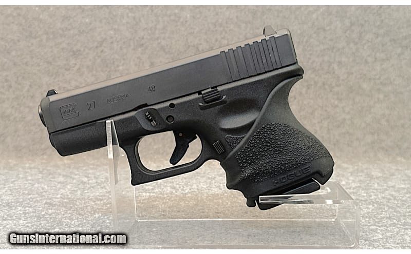Description: This firearm shows little to no wear. The Glock 27 is considered one of the most reliable concealed carry handguns you can buy. Designed with comfort in mind, the Glock 27 is very popular with most everyone that handles this firearm. Glock's family of pistols are known for their accuracy and reliability. The latest Glock dual recoil spring assembly, protect the mechanism of the pistol and allows every part to last even longer, even in extreme use. Looking for a firearm you will keep for a long time, this Glock 27 is it. .40 S&W SOLD Chambers: 1 Metal Condition: Very Good Bore Condition: Very Good Barrels: 3.4 inches Triggers: Factory Butt Pad: Hogue enlarged grips over Glock standard grip Sights: Single dot white low front site with "U" white low rear sight Item Location: Lone Tree, CO |