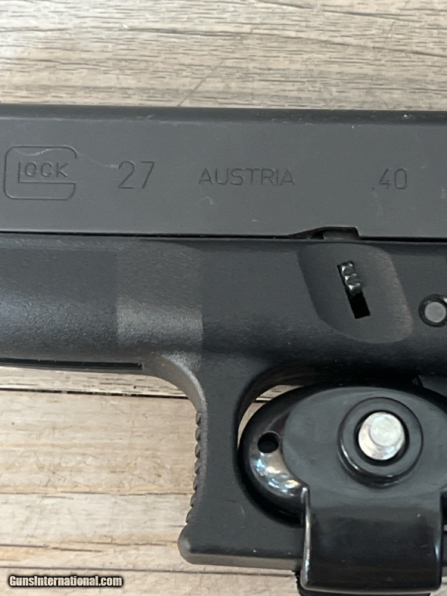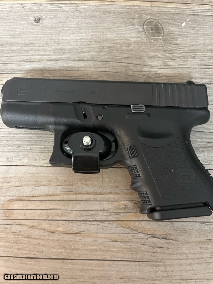 Description: Guns Listing ID: 494763 PISTOL: GLOCK MODEL 27 GEN 3 IMPORTED BY GLOCK INC, SERIAL NUMBER BVAT873, SEMI - AUTOMATIC, 40 SMITH & WESSON, BLACK (MATTE), INCLUDES ORIGINAL BOX AND PAPERS, 3.25\" The Glock 27 is a compact, semi-automatic pistol chambered in .40 S&W (Smith & Wesson). Known for its durability and reliability, it‚‚s part of Glock‚‚s line of pistols designed for concealed carry, law enforcement, and personal defense. Key Features: Caliber: .40 S&W Capacity: Typically 9+1 rounds (with the standard magazine), but it can vary depending on the magazine used. Barrel Length: 3.42 inches (approximately 87 mm) Overall Length: 6.29 inches (160 mm) Height: 4.17 inches (106 mm) Width: 1.18 inches (30 mm) Weight: 19.75 ounces (unloaded) Finish: The Glock 27 typically has a matte black polymer frame with a steel slide coated in a corrosion-resistant finish called Glock’s Tenifer. Trigger Pull: About 5.5 pounds, with a smooth and consistent action. The Glock 27 features Glock’s Safe Action System, which includes a trigger safety, firing pin safety, and drop safety, making it one of the safest pistols in its class. Its compact size makes it easy to conceal while offering a higher stopping power compared to many smaller pistols, due to the .40 caliber round. It also offers customization options with aftermarket accessories, such as extended magazines, sights, and holsters, making it popular among both professionals and concealed carry permit holders. SOLD Manufacturer: GLOCK Model: 27 Caliber Info: .40 S&W Condition: Used - Non-Certified Barrels: 3.25 Finish: black matte |