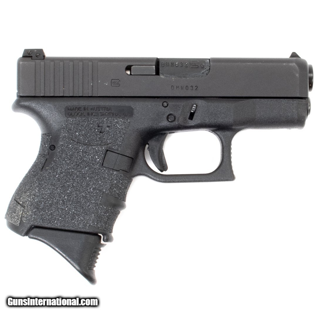 Description: Guns Listing ID: 526290 This Glock G27 Gen 3 features grip tape and a Glock target rear sight. Purchase includes a Glock Tupperware case, the owner‚‚s manual, five 9-round magazines, two 10-round magazines, and two 13-round magazines. Get the best bang for your buck when you get a Certified Used Firearm . When you see the Certified Used stamp on any of our firearms, you can be confident that you‚‚re getting exactly what you want – a gun only in very good to excellent condition and held to the highest quality standard. All Certified Used Guns come with a ‚‚no questions asked‚‚ return policy . PLUS, ALL CERTIFIED USED GUNS SHIP F SOLD Manufacturer: GLOCK Model: 27 Caliber Info: .40 S&W Condition: Used - Certified Barrels: 3.40 Action: SEMI AUTOMATIC Finish: black Weight: 1.4 |