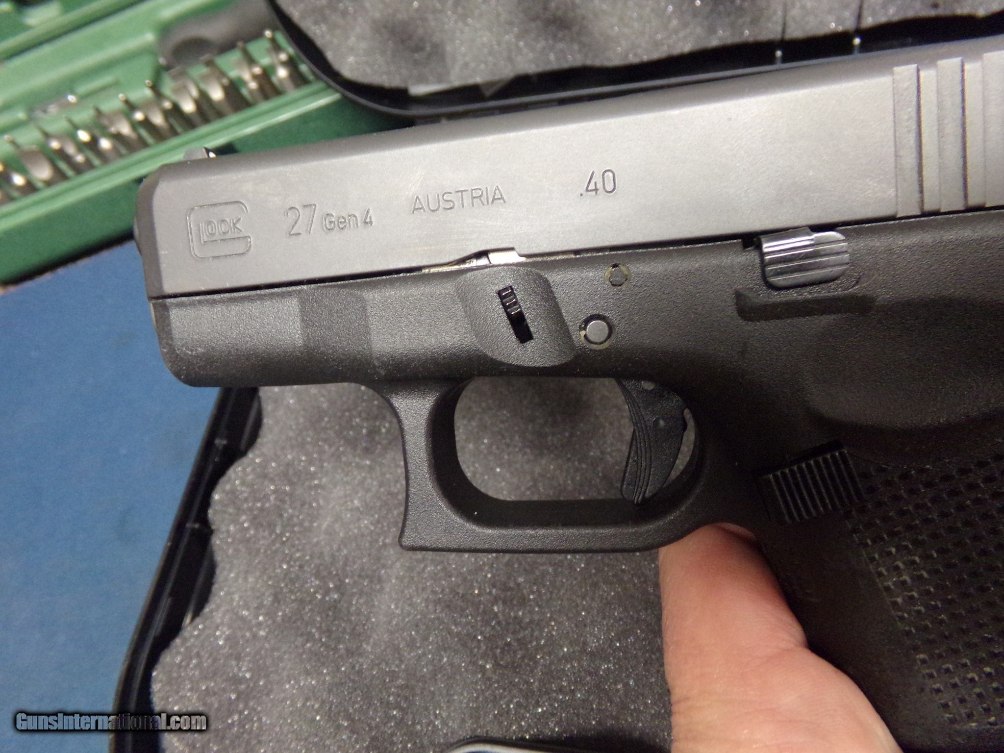 Description: Guns Listing ID: 1077269 Glock 27 Gen 4 in factory box....includes one factory 9 round magazine SOLD Manufacturer: GLOCK Model: 27 G27 GEN 4 Caliber Info: .40 S&W Condition: Used - Non-Certified Barrels: 3.43 BARREL Finish: BLACK |