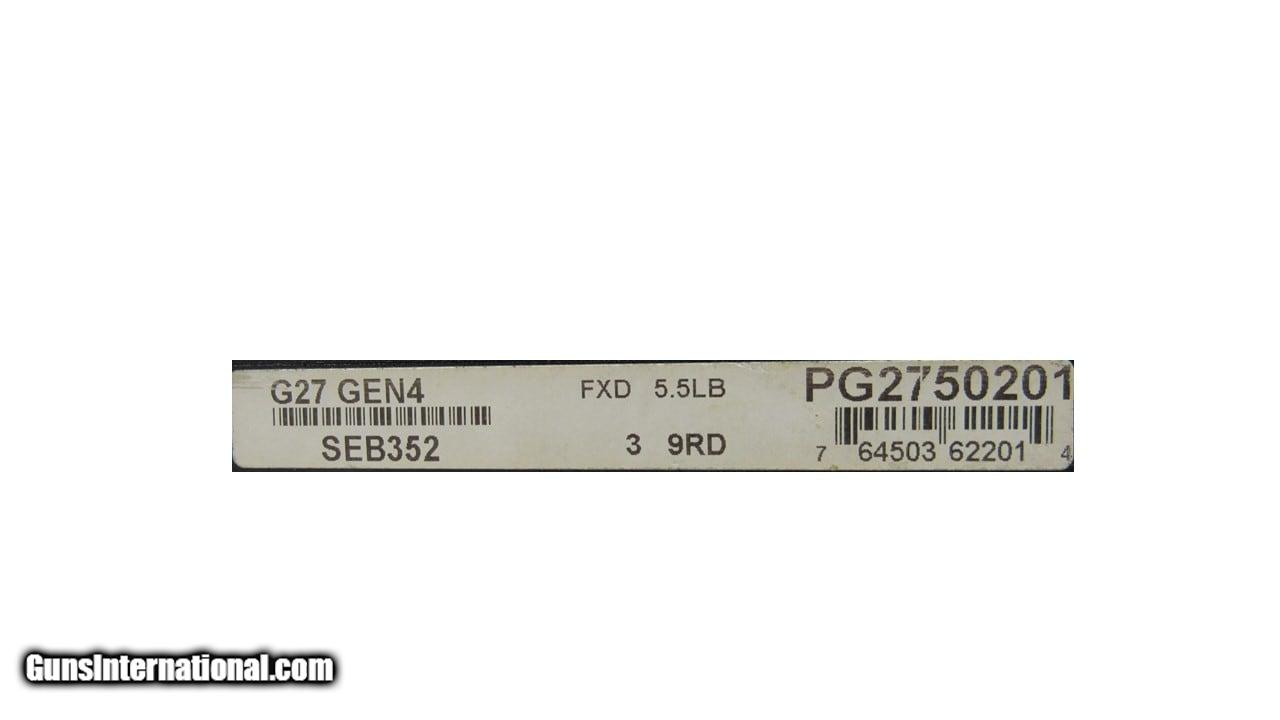 Description: Guns Listing ID: 604857 GLOCK G27 GEN 4 40S&W 9-ROUND MAG 3.43\" BARREL STRIKER-FIRED SEMI-AUTO PISTOL INCLUDES GLOCK HARDCASE W/ OWNER‚‚S MANUAL + 2 ADDITIONAL MAGAZINES & 1 INTERCHANGEABLE BACKSTRAP ALSO INCLUDES INTERCHANGEABLE LONE WOLF DISTRIBUTORS 357 SIG BARREL The Glock 27 is a sub-compact handgun chambered in 40 S&W. It makes an excellent general-purpose self-defense sidearm that is easy to conceal, packs a punch, and offers rock-solid reliability SOLD Manufacturer: GLOCK Model: 27 G27 GEN 4 Caliber Info: 40 S&W Condition: Used - Non-Certified Barrels: 3.43 BARREL Finish: BLACK |