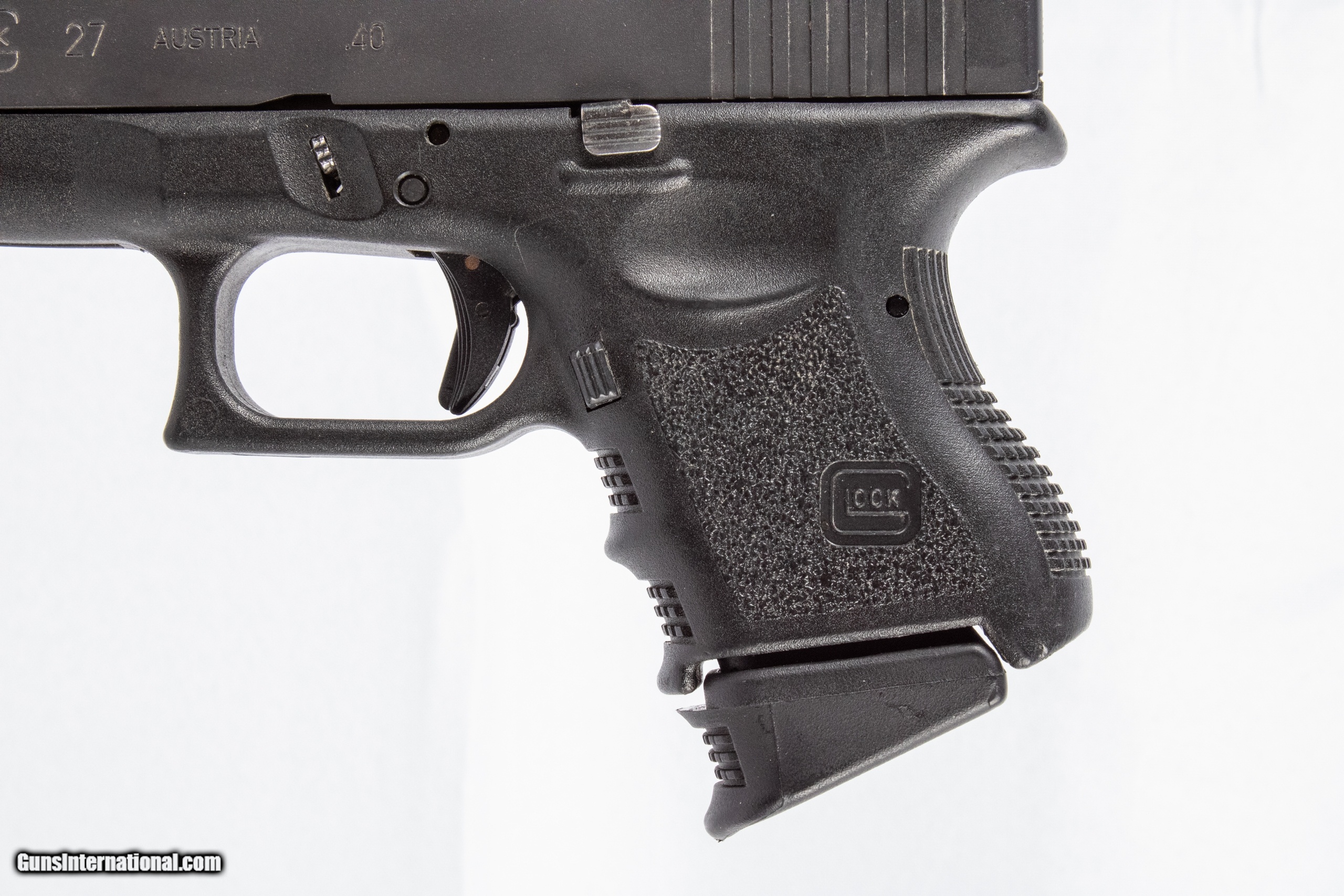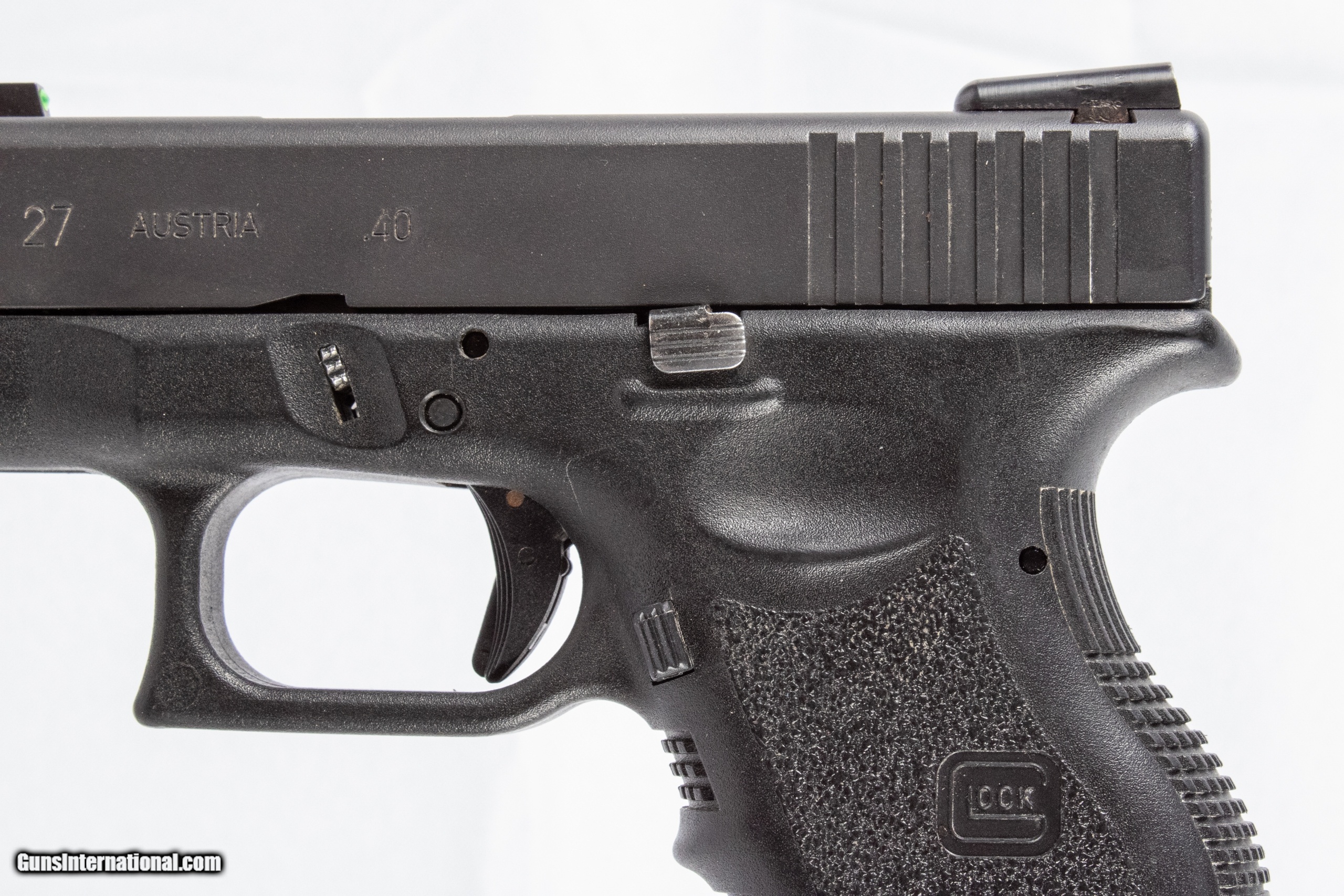 Description: Glock 27 Gen 3 chambered in 40 S&W with a 3 1/2 inch barrel, bright & shiny bore, case, 1 extra magazine and aftermarket sights. The NRA grading condition for this USED firearm is Excellent. Dury's Lifetime Warranty: All firearms purchased from Dury’s Gun Shop, NEW or USED, are covered by a lifetime warranty. We will repair or replace, at our discretion, any firearm purchased from Dury’s Gun Shop, Inc. for as long as it is owned by the purchaser. This warranty is not transferable. WE BUY GUNS! NO COLLECTION TOO BIG OR SMALL FOR OUR GUNS INTERNATIONAL CUSTOMERS ALL OF OUR FIREARMS CAN BE PURCHASED DIRECTLY FROM OUR DURY'S GUNS ! SOLD Manufacturer: Glock Model: 27 GEN 3 Caliber Info: 40 S&W Barrels: 3inches |