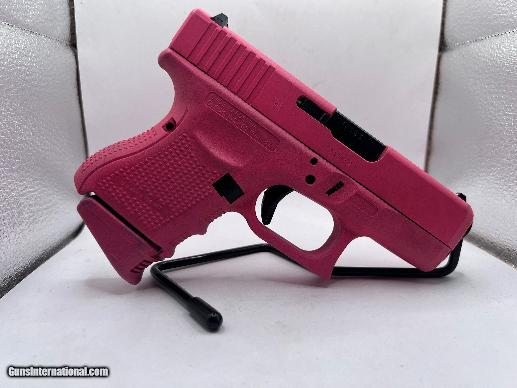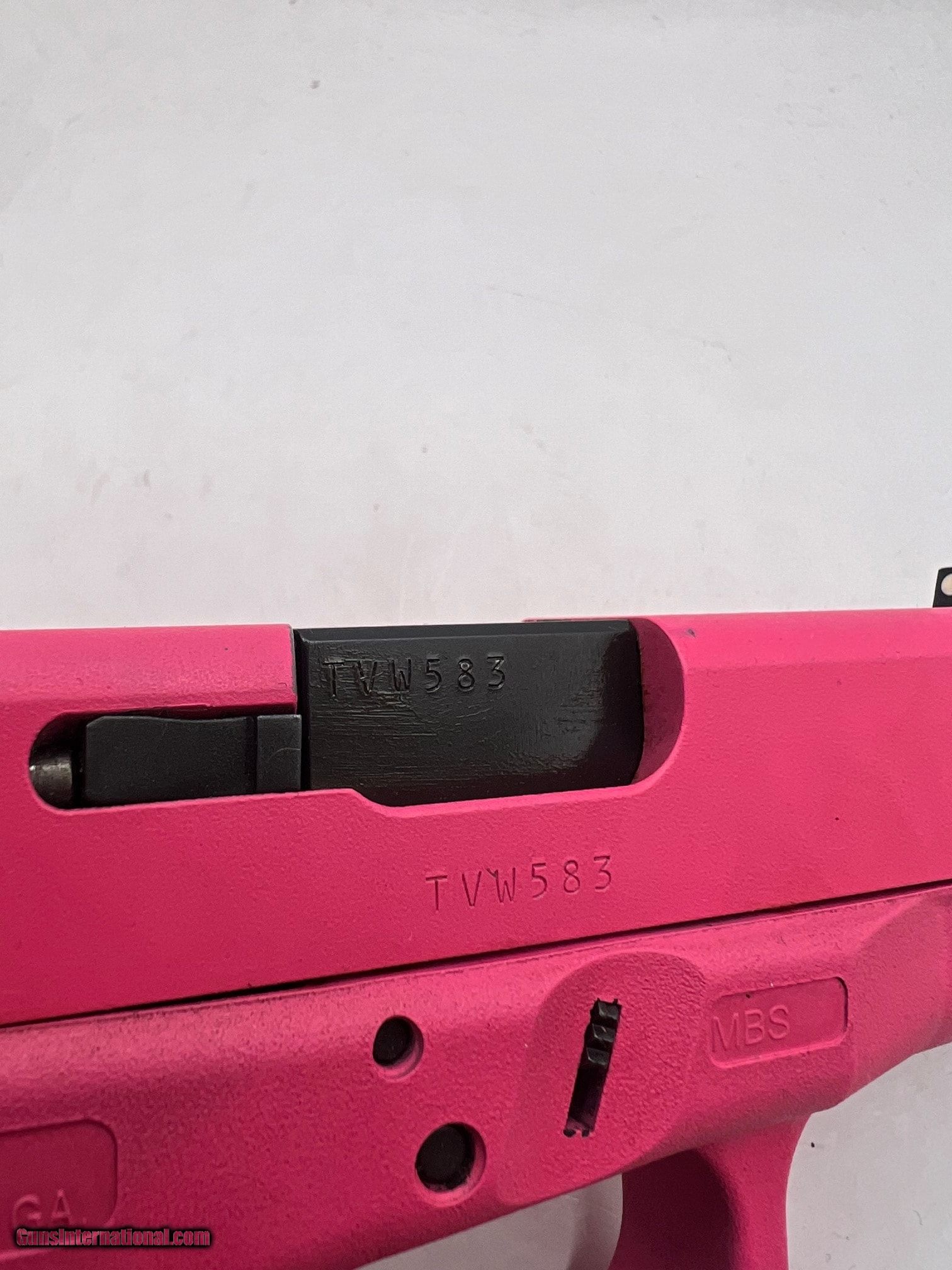 Description: Guns Listing ID: 1072206 Comes with 1 9 round magazine, no box in pink cerakote. The GLOCK 27 Gen4, in 40 S&W, introduces innovative design changes to this small, light, accurate and powerful pistol that so many U.S. law enforcement agencies have chosen as their official backup weapon. The surface of the frame employs the new Gen4 rough textured technology. A reversible enlarged magazine catch, easily changeable accommodates left and right-handed operators. SOLD Manufacturer: GLOCK Model: 27 Gen 4 Caliber Info: .40 S&W Condition: Used - Non-Certified Barrels: 3.5 BARREL Finish: PINK |
