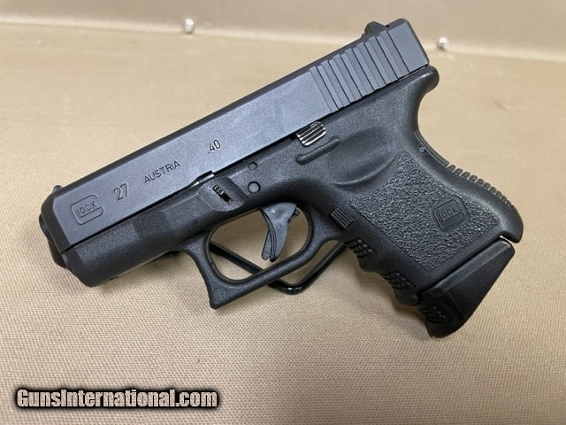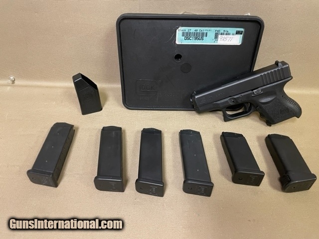 Description: Guns Listing ID: 868142 GLOCK MODEL - 27 CALIBER - .40 EXCELLENT LIKE NEW CONDITION 6 MAGS!! (4-13, 2-9) ORIGINAL \"TUPPERWARE\" CASE & MANUAL LOADER 3.5\" BARREL SOLD Manufacturer: GLOCK Model: 27 Caliber Info: .40 S&W Condition: Used - Non-Certified Barrels: 3.5 BARREL |