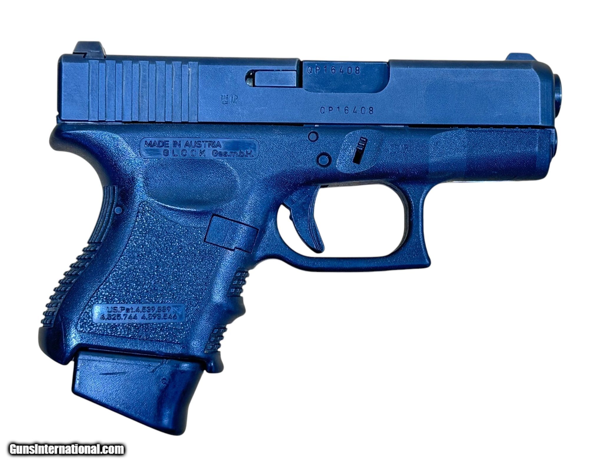Description: Guns Listing ID: 505229 This is a Gen 3 Glock 27 pistol, made in Austria and came from the Queensland Australia police Department. Comes with 1 11-round Glock factory magazine, in excellent condition, perfect working condition and rare “QP” prefix on the serial number. SOLD Manufacturer: GLOCK Model: G27 GEN 3 Caliber Info: .40 S&W Condition: Used - Non-Certified Barrels: 3.4 Action: SEMI AUTOMATIC Finish: blue |
