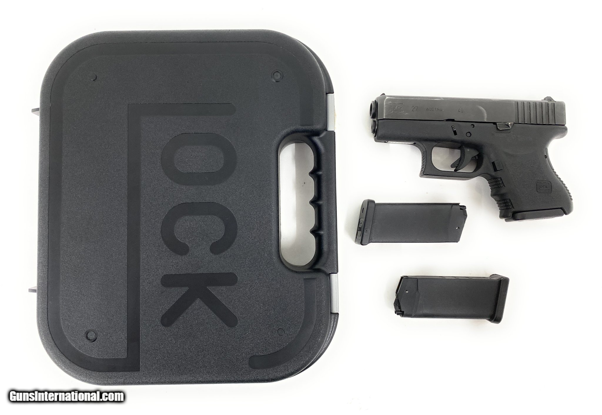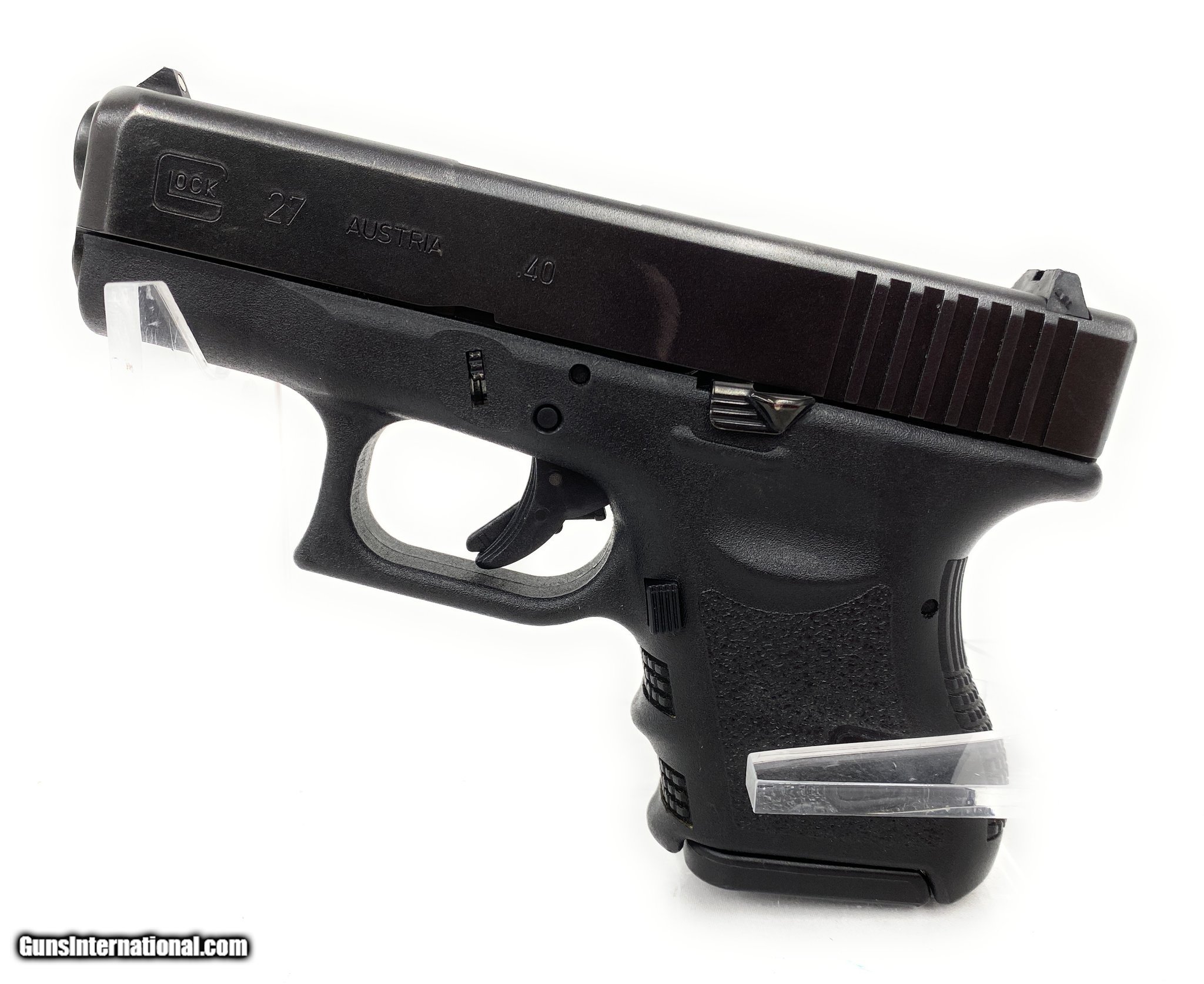 Description: Guns Listing ID: 513687 This G27 is in very good condition. The slide has discoloration near the front sight as well as in one spot by the slide lock most likely from hoster use. The barrel is clean, clear with a good bore. Rifling is crisp. The exterior of barrel has some striations. Pistol frame is mint. This Glock G27 Gen 3 delivers power and accuracy in a small, lightweight package. It is suitable for personal defense, concealed carry and a good option for first-time buyers. Perfect for your EDC kit. Comes with 3 magazines and storage box. All information is correct to the best of our knowledge. Before making a purchase do your own due diligence. SKU-25040062 WEIGHT: 3.10lbs BOX: M2 SOLD Manufacturer: GLOCK Model: G27 GEN 3 Caliber Info: .40 S&W Condition: Used - Non-Certified Barrels: 3.5 BARREL Action: STRIKER FIRED Weight: 1.6 lbs. |