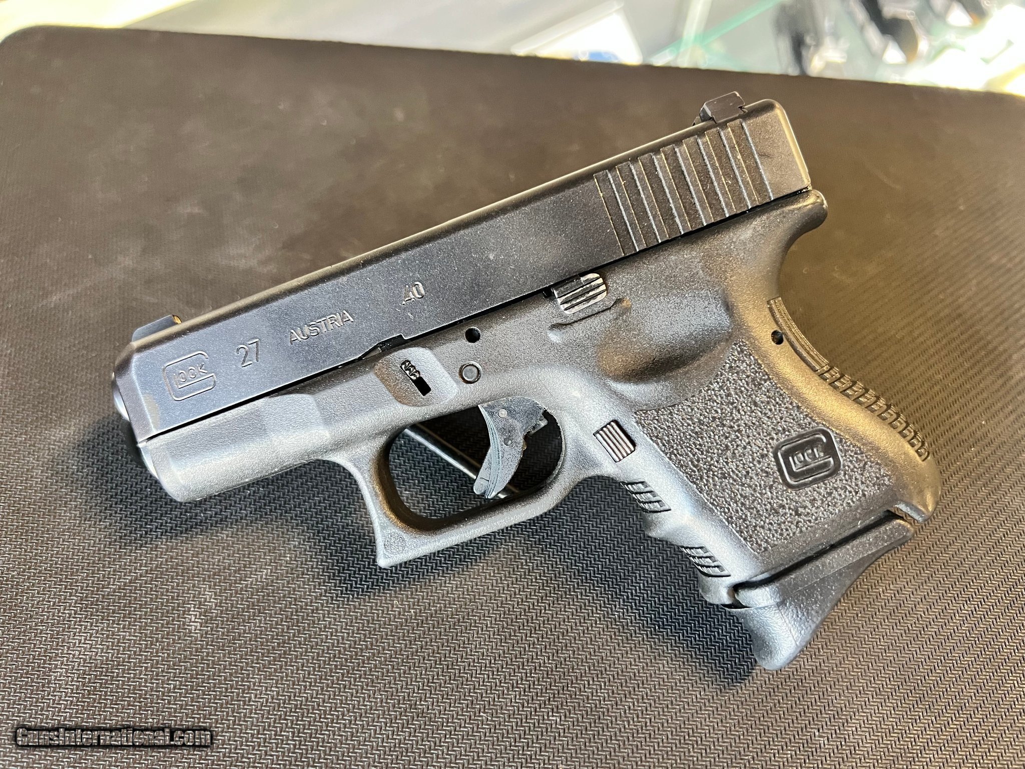 Description: Guns Listing ID: 576727 - VERY GOOD CONDITION - ORIGINAL BOX & OWNER‚S MANUAL - THREE 9-RD MAGAZINES - ORIGINAL HARDWARE INCLUDED SOLD Manufacturer: GLOCK Model: G27 GEN 3 Caliber Info: .40 S&W Condition: Used - Non-Certified Barrels: 3.43" BARREL Action: SEMI AUTOMATIC Finish: black |