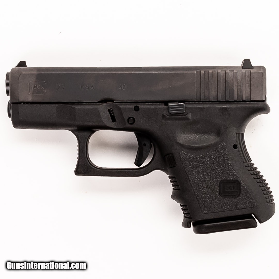 Description: Guns Listing ID: 394326 Compact and perfect for daily carry, the Glock 27 is chambered in .40 S&W. This reliable pistol is popular among law enforcement and civilians alike. 2-9 round magazines, the original case, and a manual are included. SOLD Manufacturer: GLOCK Model: G27 "GEN 3 Caliber Info: .40 S&W Condition: Used - Certified Barrels: 3.3 BARREL Finish: BLACK |