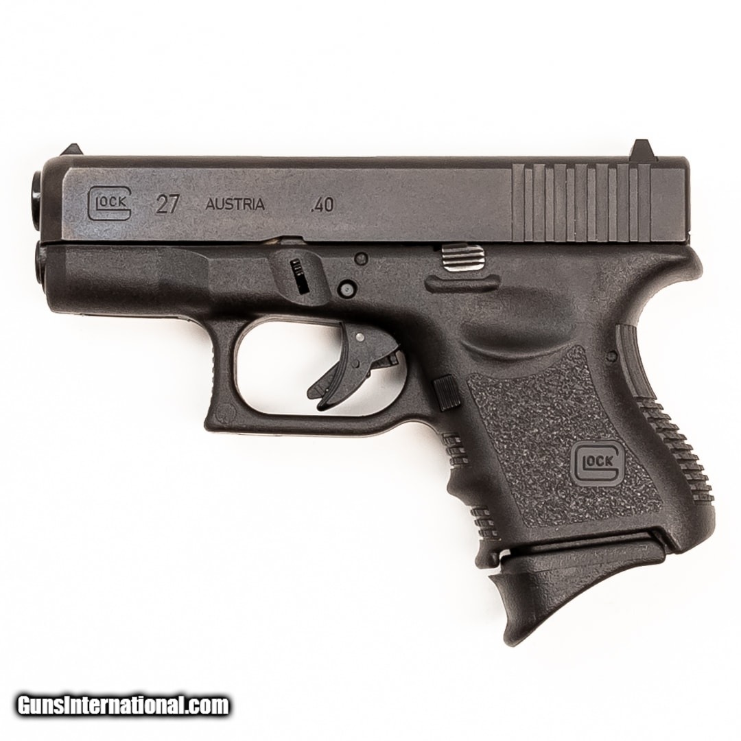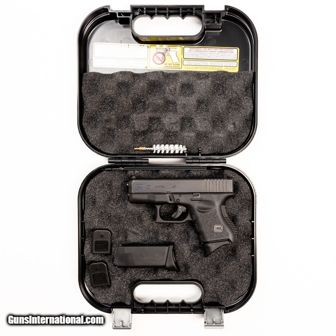 Description: Guns Listing ID: 873610 The Glock 27 Gen 3 is a redesigned variant of the popular Glock 23 to make an even better carry pistol. With Glock‚‚s safe action trigger and an improved frame, the \"Baby Glock\" is an outstanding option for those looking to get a top-of-the-line sub-compact. This G27 Gen 3 includes the original case and two 9-round magazines. Get the best bang for your buck when you get a Certified Used Firearm . When you see the Certified Used stamp on any of our firearms, you can be confident that you’re getting exactly what you want – a gun only in very good to excellent condition and held to the highest quality standard. All Certified Used Guns come with a ‘no questions asked’ return policy . PLUS, ALL CERTIFIED USED GUNS SHIP FREE SOLD Manufacturer: GLOCK Model: G27 GEN 3 Caliber Info: .40 S&W Condition: Used - Certified Barrels: 3.4 BARREL Finish: BLACK |