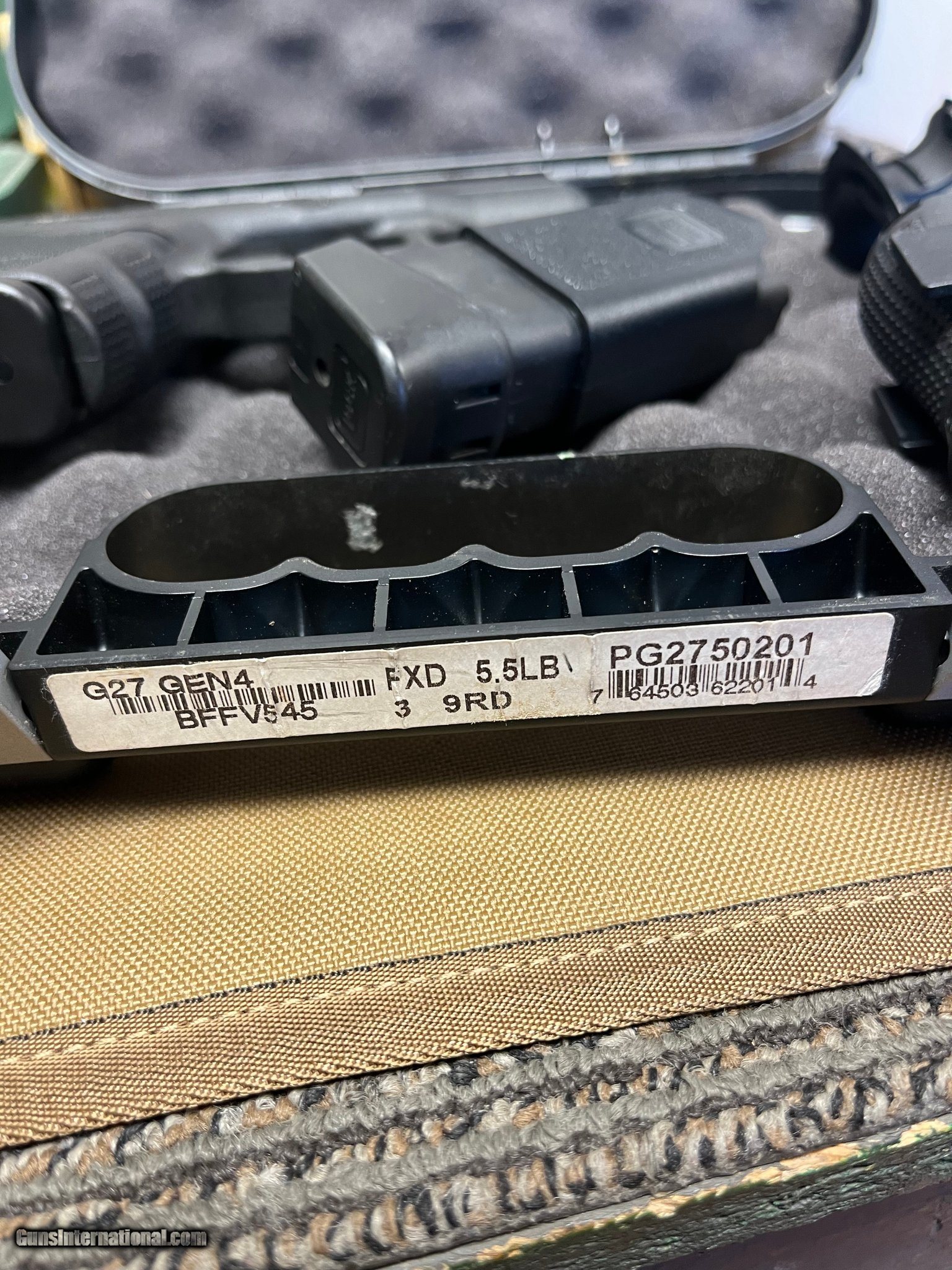 Description: Guns Listing ID: 464063 Glock 27 Gen 4 40 S&W semi auto pistol. Comes in factory box with two factory 9 round magazines. Also has back straps and night sights. Nice gun! SOLD Manufacturer: GLOCK Model: G27 GEN 4 Condition: Used - Non-Certified Barrels: 3.5 Gauge Info: .40 S&W Finish: black |
