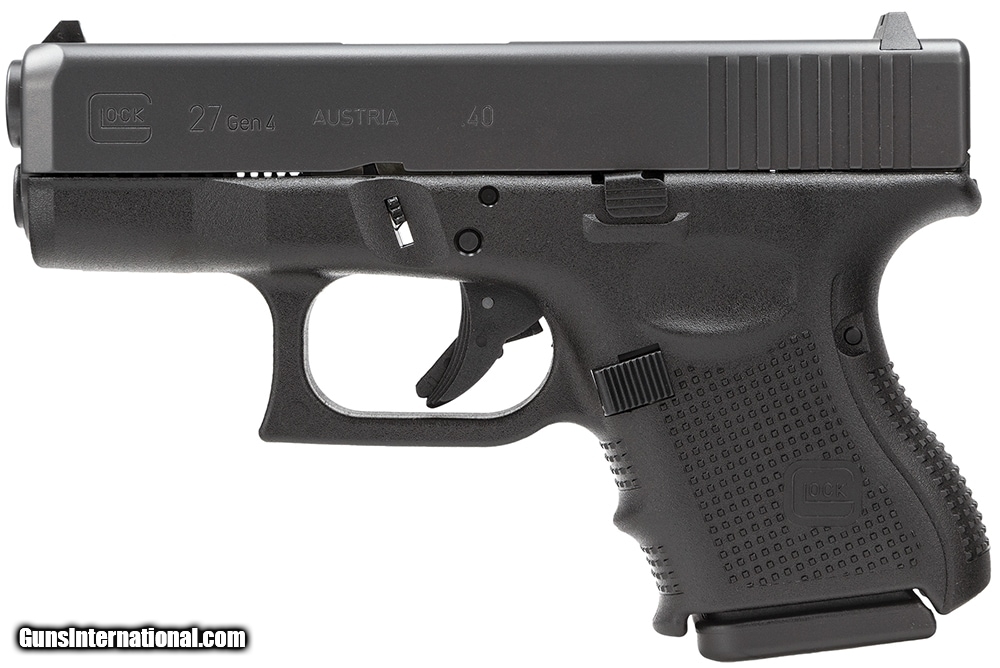 Description: Guns Listing ID: 523549 The Glock G27 Gen 4 is a sub-compact semi-automatic handgun that offers numerous upgrades from the original Glock 27. Chambered in 40 SW this pistol is built on a polymer frame with rough texture technology for added durability as well as a new dual recoil spring assembly that increases the life of the system. The modular backstraps allow the user to quickly and easily change the grip size according to individual hand size and comfort while the enlarged magazine catch is reversible to accommodate left- or right-handed users. Small and lightweight yet powerful and accurate the G27 Gen 4 is a suitable weapon for personal defense and concealed carry and is also trusted by law enforcement personnel across the country and beyond. Details Action DAO - Caliber 40 S&W - Capacity 9+1 - Grip Black Synthetic - Finish Black - Sights Fixed - Barrel Length 3.46\" - Overall Length 6.29\" - Weight 19.75 oz - The Glock 27 G4 is the Mighty Mini in .40 cal. It is amazingly accurate and controllable the G27 puts 10 rounds of .40 cal. at your fingertips in a packable small enough for a pocket or ankle holster. This is the ideal backup gun to complement the larger Clock .40s. Externally what is immediately apparent is the multiple back strap design of the frame which can be instantly adapted to small standard and large frame hands. The surface of the frame is the Gen4 Rough Textured frame scientifically designed real world tested Internally the Gen4 Clock dual recoil spring assembly substantially increases the life of the system. A reversible magazine catch changeable in seconds accommodated left or right handed operators. SOLD Manufacturer: GLOCK Model: G27 GEN 4 Caliber Info: .40 S&W Condition: new Barrels: 3.5" barrel |