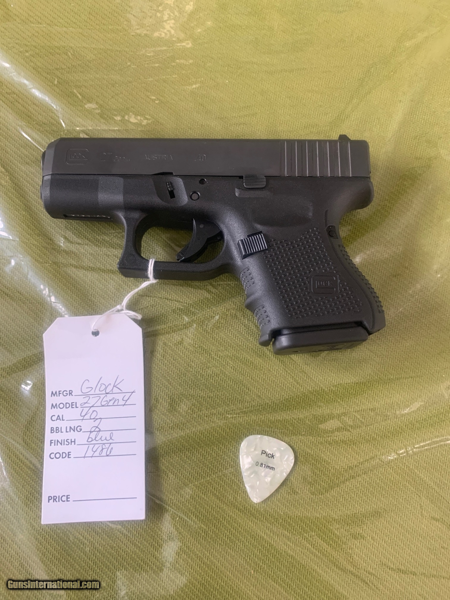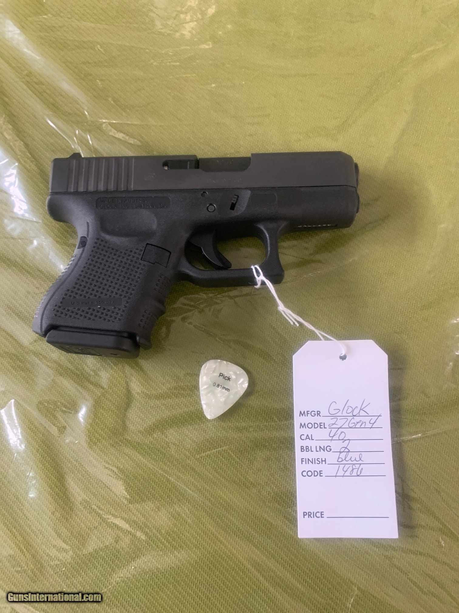 Description: Guns Listing ID: 662600 Like new does not appear to have been fired, includes plastic case, literature, and extra magazine. SOLD Manufacturer: GLOCK Model: G27 GEN 4 Caliber Info: .40 S&W Condition: Used - Non-Certified Barrels: 3.5" barrel |
