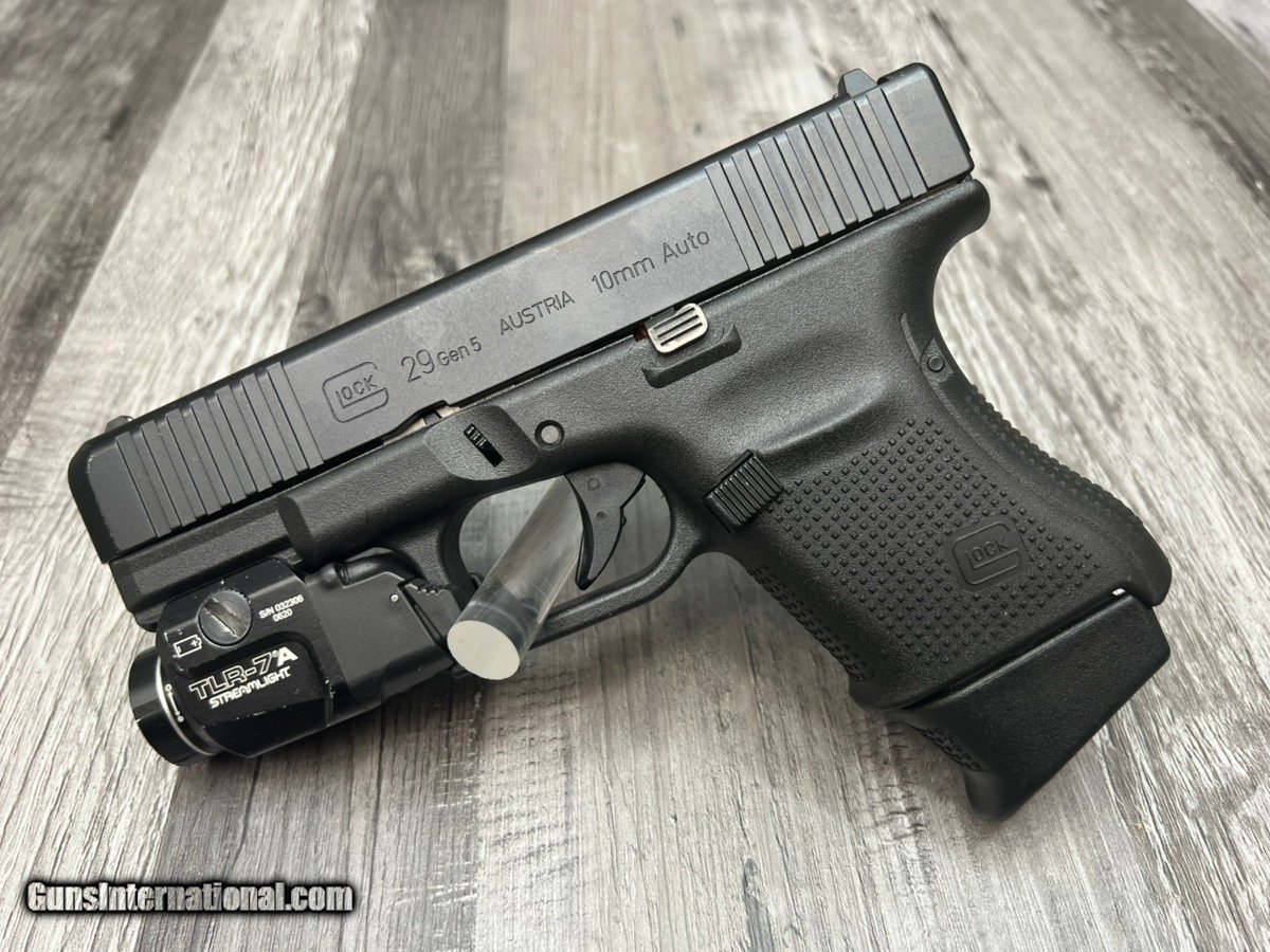 Description: Guns Listing ID: 567361 PISTOL: GLOCK MODEL 29 GEN 5, SERIAL NUMBER CENM586, BLACK (MATTE), YES - INCLUDES ORIGINAL BOX, 3.5, 10MM AUTO, SEMI - AUTOMATIC SOLD Manufacturer: GLOCK Model: 29 GEN 5 Caliber Info: 10mm Auto Condition: Used - Non-Certified Barrels: 3.5" BARREL Action: SEMI AUTOMATIC Finish: Black (Matte) |
