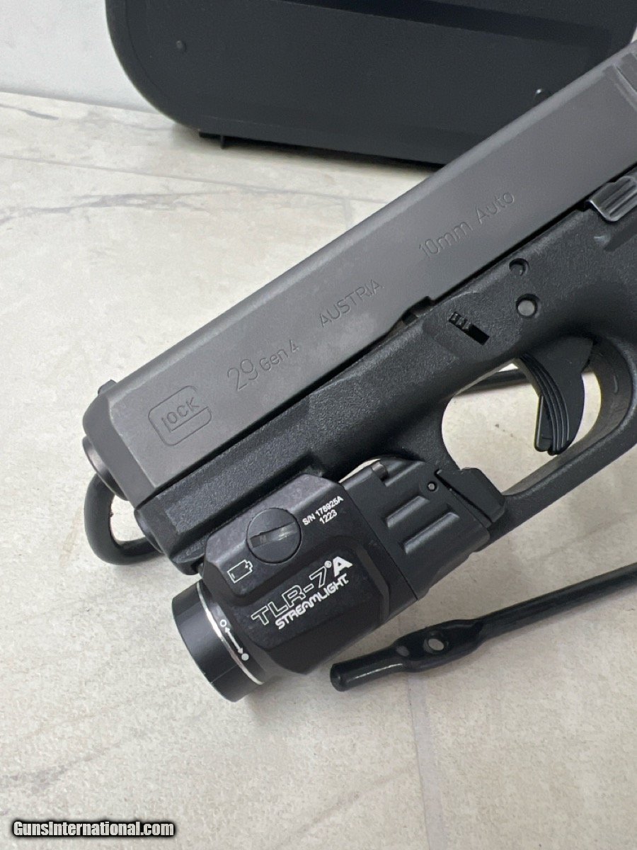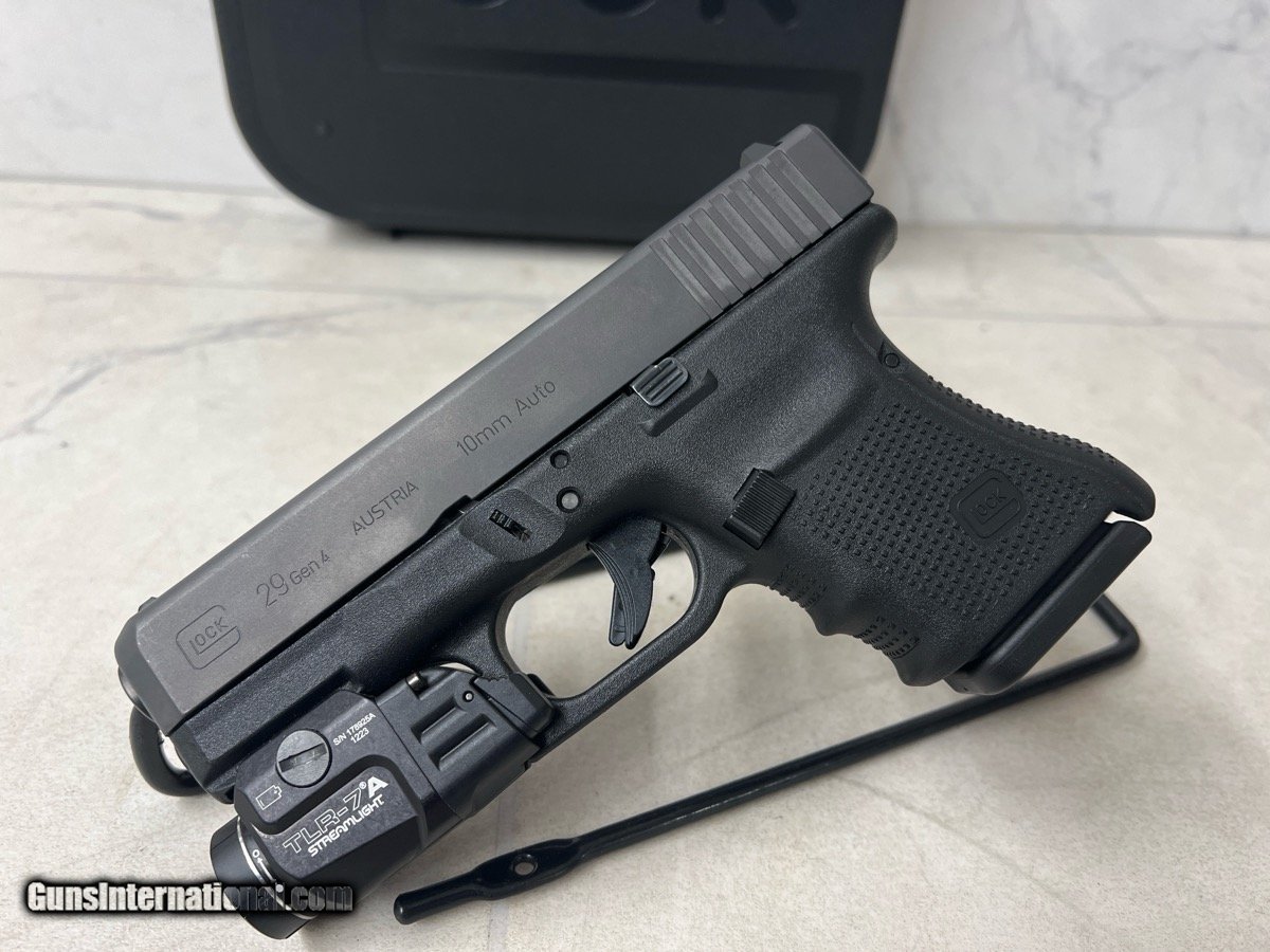 Description: Guns Listing ID: 497347 GLOCK 29 10MM WITH 3 MAGS A CASE AND STREAMLIGHT TLR-7A INVENTORY# PO1018238 SOLD Manufacturer: GLOCK Model: G29 GEN 4 Caliber Info: 10MM Condition: Used - Non-Certified Barrels: 4 BARREL Action: SEMI AUTOMATIC Finish: black matte |