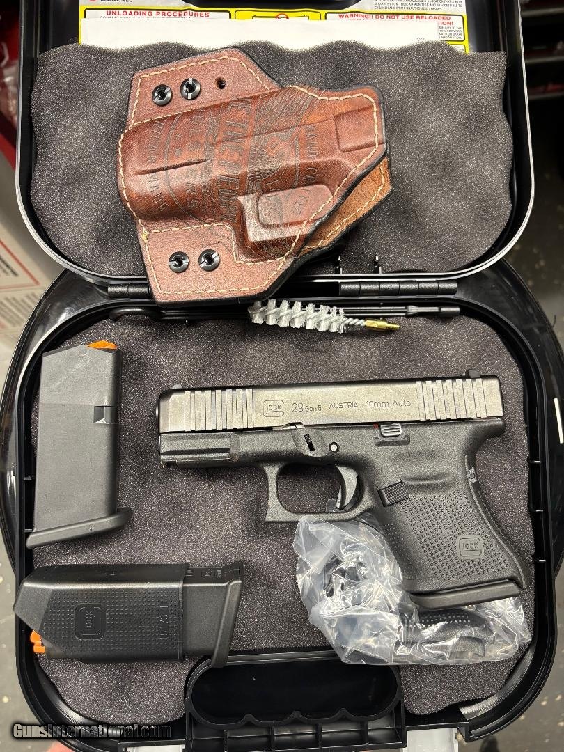 Description: Guns Listing ID: 535719 GLOCK G29 GEN5 COMES WITH BOX, HOLSTER, AND 3 MAGS SOLD Manufacturer: GLOCK Model: G29 GEN 5 Caliber Info: 10MM Condition: Used - Non-Certified Barrels: 3.78 BARREL Action: SEMI AUTOMATIC Finish: BLACK Weight: 1.5 LBS. |