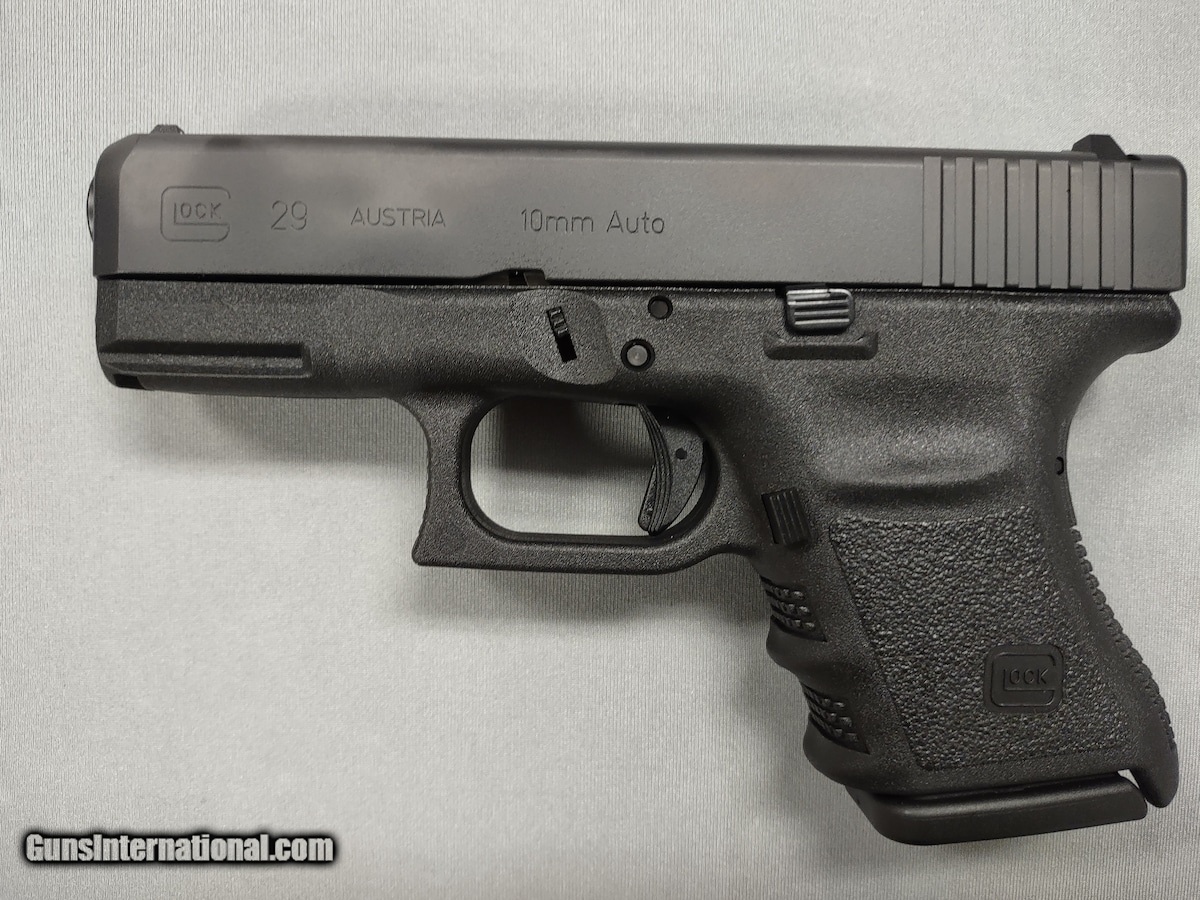 Description: Guns Listing ID: 518502 This Glock 21 is in amazing condition (we can‚‚t even tell if it has been fired) but it only comes with one magazine. It was traded in by a customer SOLD Manufacturer: GLOCK Model: G29SF Caliber Info: 10MM Condition: Used - Non-Certified Barrels: 3.8" barrel |