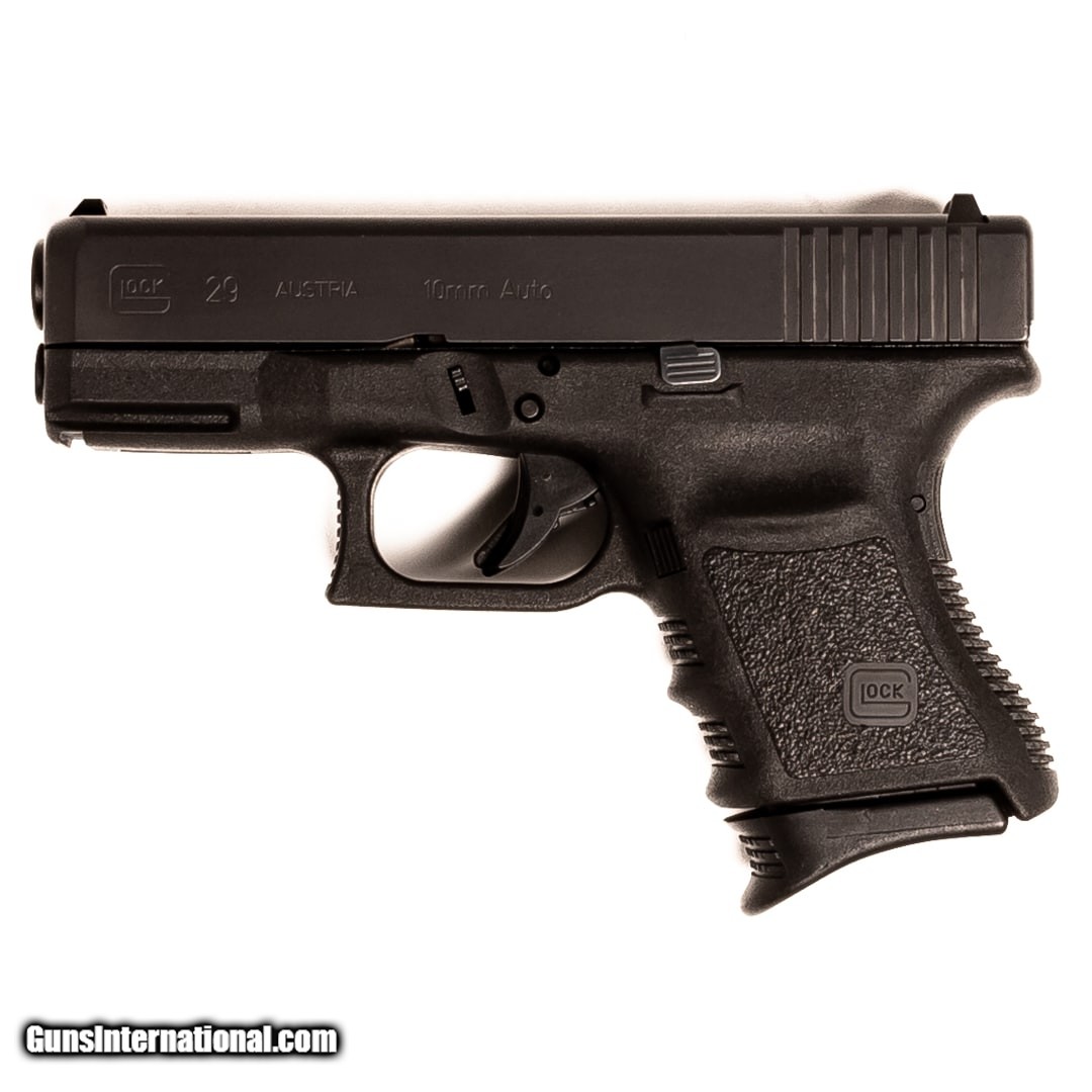 Description: Guns Listing ID: 785988 The Glock 29 Short Frame is an exceptionally powerful and compact personal protection sidearm. This small frame allows for shooters to easily conceal this pistol, making it perfect for daily carry. This G29SF includes the original case and two 10-round magazines. Get the best bang for your buck when you get a Certified Used Firearm . When you see the Certified Used stamp on any of our firearms, you can be confident that you’re getting exactly what you want – a gun only in very good to excellent condition and held to the highest quality standard. All Certified Used Guns come with a ‘no questions asked’ return policy . PLUS, ALL CERTIFIED USED GUNS SHIP FREE! SOLD Manufacturer: GLOCK Model: G29SF Caliber Info: 10MM Condition: Used - Certified Barrels: 3.7 BARREL Finish: BLACK |