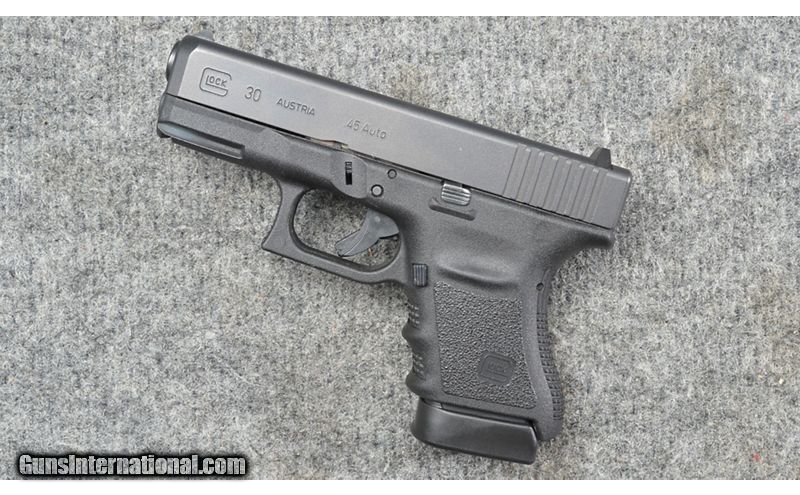 Description: This Glock handgun is in excellent condition. There is light wear to the slide stop/release. The slide cycles smoothly with good rifling. Includes three magazines. .45 ACP SOLD Metal Condition: Excellent Bore Condition: Excellent Barrels: 3.78 Weight: 26.28 oz Sights: Fixed front dot with rear outline. Item Location: Gainesville, VA |