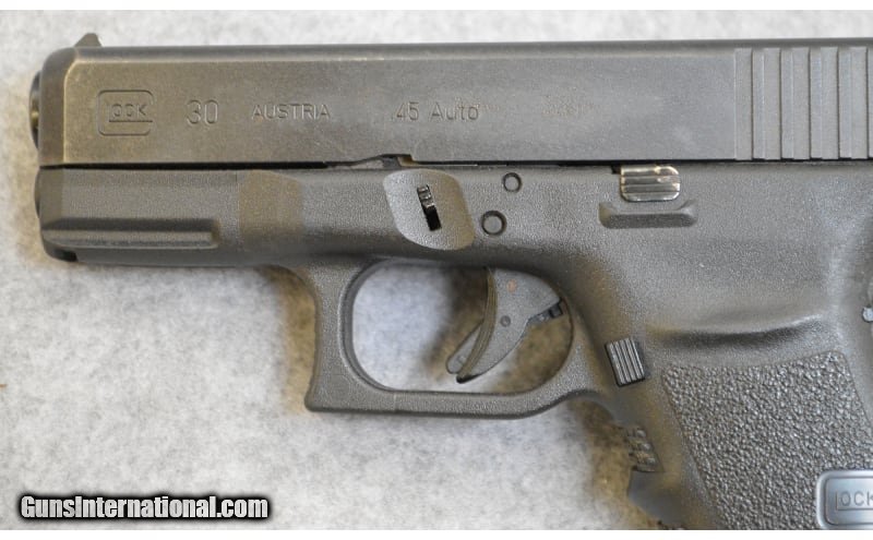 Description: This glock 30 chambered in 45 ACP is in great condition with only mild wear on the slide from use, this firearm comes with its factory box and one 10 round magazine.The GLOCK 30 Gen4 in the 45 Auto offers excellent out-of-the-box precision paired with the ballistic quality of this caliber. The Gen4 design of this small easy-to-shoot package combines a shorter trigger reach with a great magazine capacity. .45 ACP SOLD Chambers: 45 ACP Metal Condition: Good (only mild wear on slide) Bore Condition: Excellent Barrels: 3.5" barrel Weight: 1.65 lbs Sights: Iron sights Item Location: Huntsville, AL |