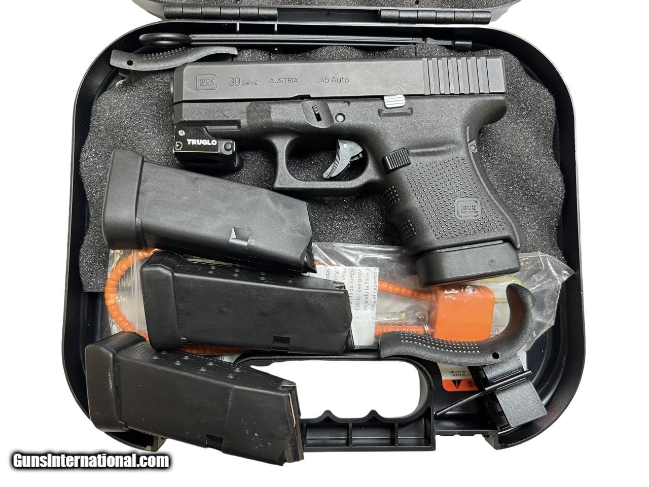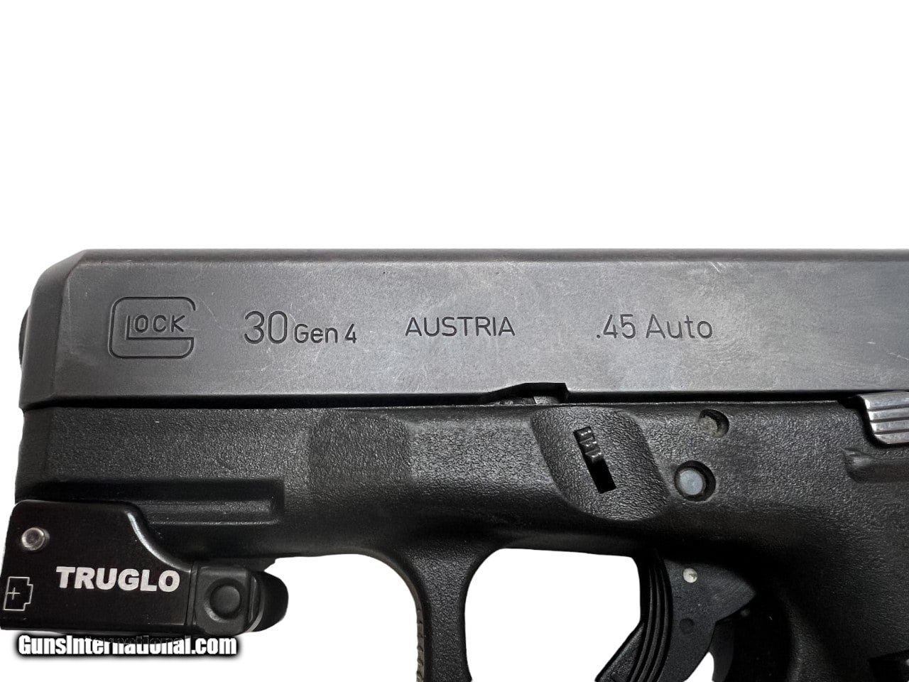 Description: Guns Listing ID: 510621 A sub-compact, semi-auto handgun chambered in 45 ACP, this Glock 30 Gen 4 is a popular choice among law enforcement and well-suited for self-defense. It is built on a lightweight polymer frame and sports an integral rail and a modular backstrap system that allows the user to quickly and easily change grip sizes for the best fit. Finger grooves and aggressive checkering on the grip also aid in a positive grasp and more comfortable experience. This pistol offers out-of-the-box accuracy alongside Glock’s famous durability. Also comes with 3 Extra mags and has a laser on the gun. Item# I01019679 CC- GTE SOLD Manufacturer: GLOCK Model: 30 GEN 4 Caliber Info: .45 AUTO Condition: Used - Non-Certified Barrels: 3.5 BARREL Finish: BLACK |