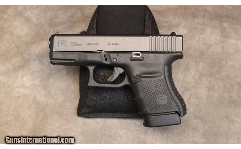 Description: This Glock 30 Gen 4 is in very good condition. It comes with one spare 10 round magazine. It shows a little finish wear around the muzzle end of the slide. It would make a very good home defense or carry gun. .45 Auto SOLD Chambers: .45 Auto Metal Condition: Very Good Bore Condition: Very Good Barrels: 3.78 Triggers: Glock safety Weight: 26.28 oz Sights: "White outline rear, white dot front Item Location: Columbia, MO |