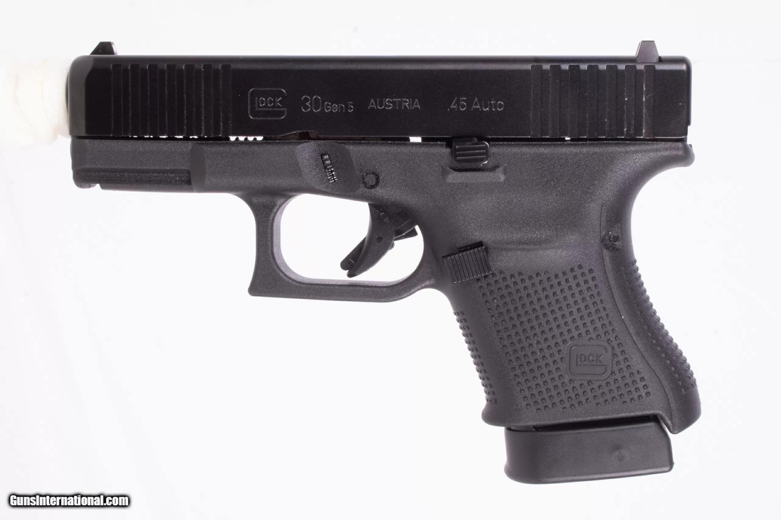 Description: Glock 30 Gen 5 chambered for .45 ACP with 3.75-inch barrel, black finish, standard sights, large magazine release, and smooth frame with accessory rail. Action appears to be in excellent working order with mirror bright, sharply rifled bore. The NRA grading condition for this USED firearm is Excellent. We ship domestically in the United States. Additional shipping rates apply to Alaska and Hawaii. Dury's Lifetime Warranty: All firearms purchased from Dury’s Gun Shop, NEW or USED, are covered by a lifetime warranty. We will repair or replace, at our discretion, any firearm purchased from Dury’s Gun Shop, Inc. for as long as it is owned by the purchaser. This warranty is not transferable. WE BUY GUNS! NO COLLECTION TOO BIG OR SMALL FOR OUR GUNS INTERNATIONAL CUSTOMERS ALL OF OUR FIREARMS CAN BE PURCHASED DIRECTLY FROM OUR DURY'S GUNS SITE ! SOLD Manufacturer: Glock Model: 30 Caliber Info: 45 ACP Barrels: 3inches |