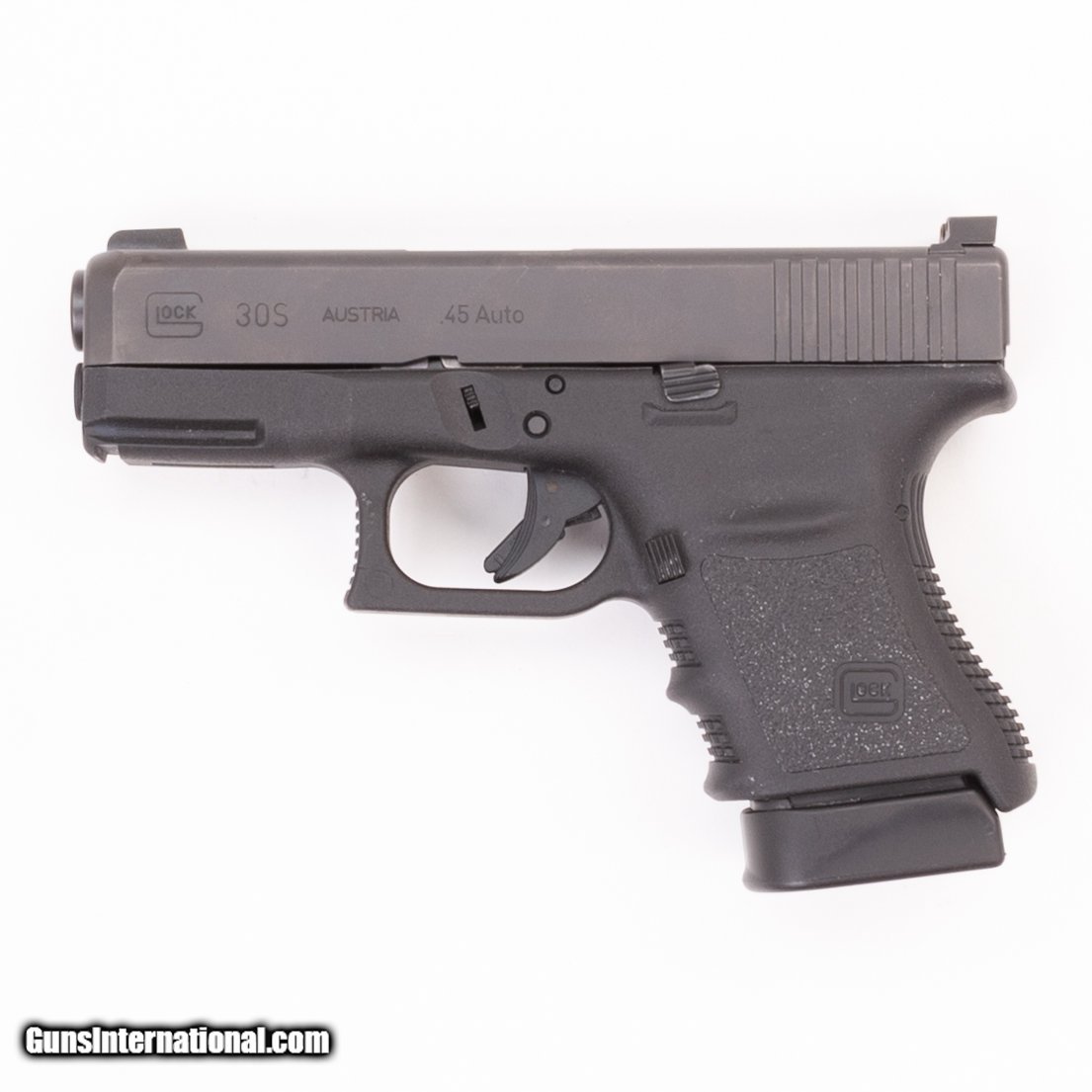 Description: Guns Listing ID: 518719 This Glock comes with two 10-round magazines, one 9-round magazine, the original case, owner‚‚s manual, a loader, a Rounded Gear right hand IWB holster and it‚‚s equipped with Trijicon night sights. Get the best bang for your buck when you get a Certified Used Firearm . When you see the Certified Used stamp on any of our firearms, you can be confident that you’re getting exactly what you want – a gun only in very good to excellent condition and held to the highest quality standard. All Certified Used Guns come with a ‘no questions asked’ return policy . PLUS, ALL CERTIFIED USED GUNS SHIP FRE SOLD Manufacturer: GLOCK Model: 30S SF Caliber Info: .45 ACP Condition: Used - Certified Barrels: 3.75 Action: SEMI AUTOMATIC Finish: black Weight: 1.4 |