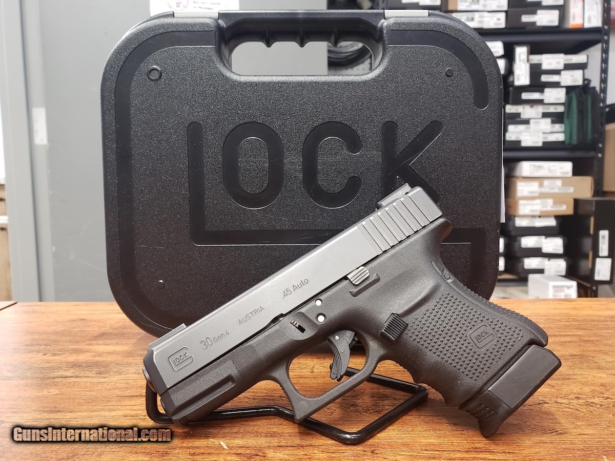Description: Guns Listing ID: 479936 There is nothing quite like packing a GLOCK chambered in the hard hitting .45 ACP. The compact and concealable GLOCK 30 Gen 4 semi-auto pistol is exactly what you are looking for when it comes to big bore performance in a small, lightweight package. GLOCK was able to stuff ten rounds of the man stopping .45 ACP into the subcompact pistol while retaining a form factor that will melt into just about any clothing with a good holster. The improvements with the Gen 4 upgrade adds some welcome changes to the ultra reliable pistol. A new rough texture is applied to the grip of the pistol so that you will have a good grip on the pistol regardless of how slippery your hands are from sweat, mud or even blood. GLOCK even added a replaceable backstrap system that helps fit the pistol to your hand as well as a reversible magazine catch so left handed shooters can enjoy the pistol just as much as Gaston Glock envisioned. Specifications and Features: GLOCK PG3050201 GLOCK 30 Gen 4 .45 ACP 3.77 Barrel 10 Rounds Polymer Frame Black Finish 6.88 Overall Length 4.8 Overall Height 1.27 Overall Width 26.3 oz 5.5 lbs Trigger Pull Striker Fired Trigger Right hand octagonal barrel rifling 1:15.75 Twist SOLD Manufacturer: GLOCK Model: G30 GEN 4 Caliber Info: .45 ACP Condition: Used - Non-Certified Barrels: 3.77" barrel |