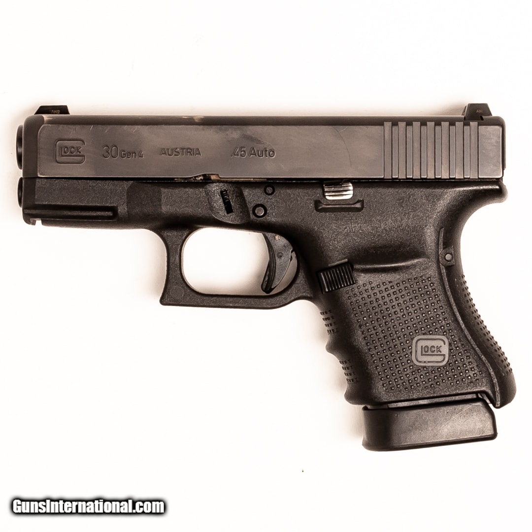 Description: Guns Listing ID: 553961 A sub-compact, semi-auto handgun chambered in 45 ACP, the Glock 30 is a popular choice among law enforcement and well-suited for self-defense. It is built on a lightweight polymer frame and sports an integral rail and a modular backstrap system that allows the user to quickly and easily change grip sizes for the best fit. Finger grooves and aggressive checkering on the grip also aid in a positive grasp and more comfortable experience. This G30 Gen 4 includes two 10-round magazines. SOLD Manufacturer: GLOCK Model: G30 GEN 4 Caliber Info: .45 ACP Condition: Used - Certified Barrels: 3.7 BARREL Finish: BLACK |