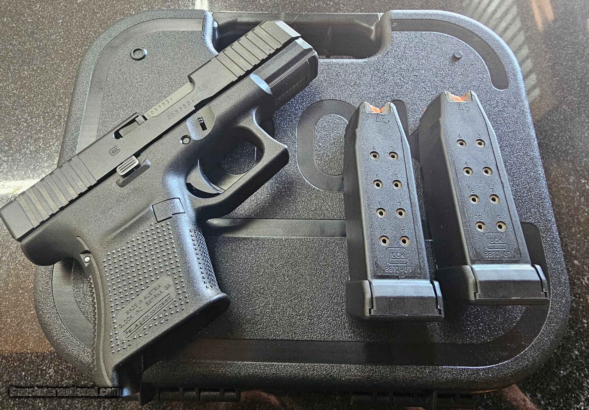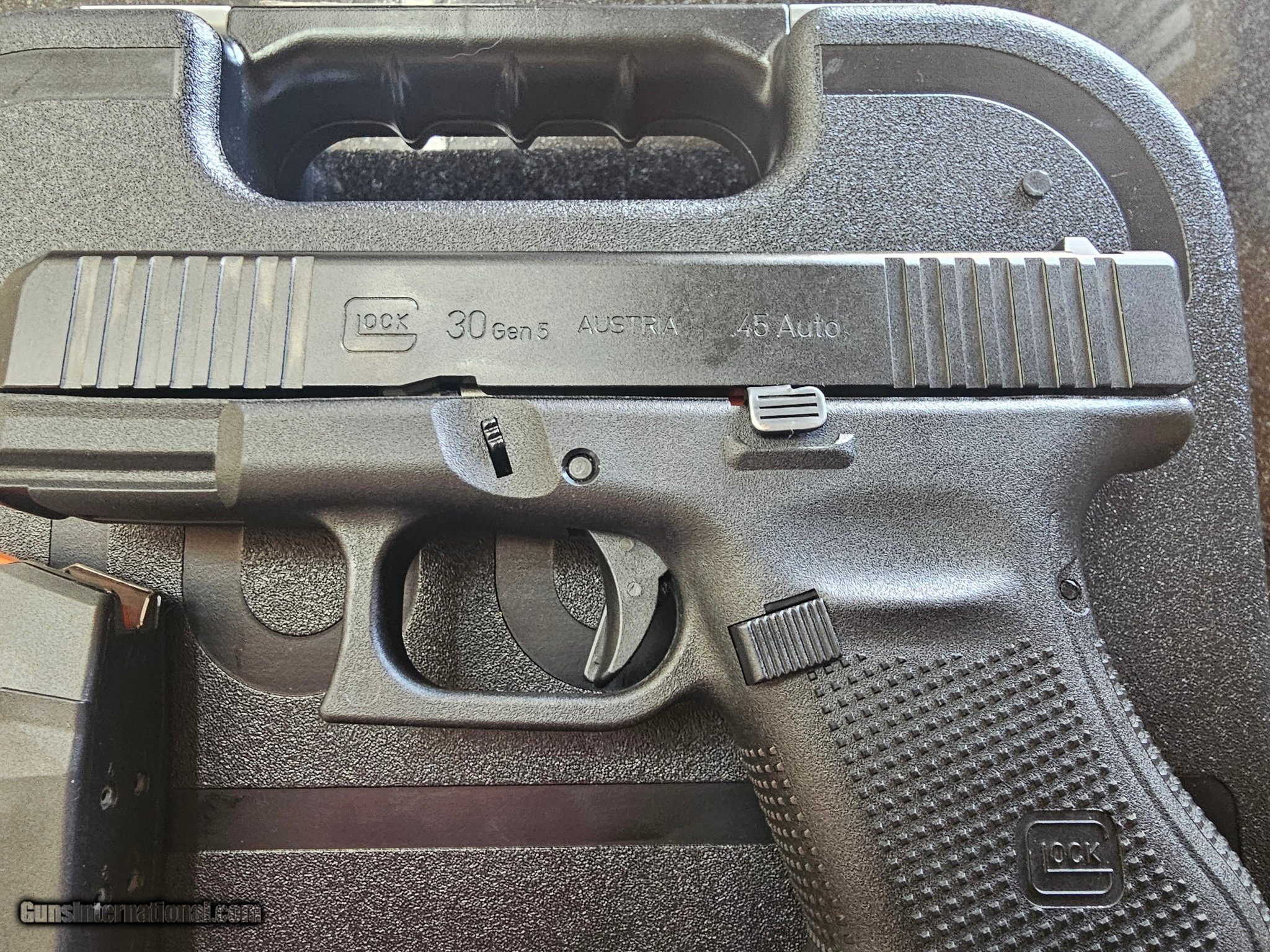 Description: Guns Listing ID: 502385 The Glock 30 Gen5 is a compact, .45 ACP pistol designed for self-defense, concealed carry, and law enforcement backup roles. It offers a balance between firepower and concealability while maintaining Glock’s signature reliability and simplicity. Key Features: Caliber: .45 ACP, a powerful cartridge known for its stopping power. Frame & Finish: Polymer frame with Glock’s nDLC (Diamond-Like Carbon) finish on the slide, providing increased durability and corrosion resistance. Barrel: 3.78-inch Glock Marksman Barrel (GMB) for improved accuracy and better rifling. Grip: Compact grip with no finger grooves (Gen5 update), allowing better comfort for various hand sizes. Features interchangeable backstraps for customization. Sights: Standard polymer Glock sights (white dot front, white U-notch rear), but compatible with aftermarket night sights or optics-ready options. Action: Safe Action System (striker-fired, no external hammer) with a consistent trigger pull around 5.5 lbs. Magazine Capacity: Comes with two factory 10-round magazines, but can also accept larger Glock 21 (13-round) magazines. Slide & Controls: Ambidextrous slide stop lever, flared magwell for faster reloads, and the Gen5 trigger improvements for a smoother pull. Weight: 26.3 ounces (unloaded), making it lightweight for a .45 ACP pistol. SOLD Manufacturer: GLOCK Model: G30 GEN 5 Caliber Info: .45 ACP Condition: Used - Non-Certified Barrels: 3 Action: SEMI AUTOMATIC Finish: black |