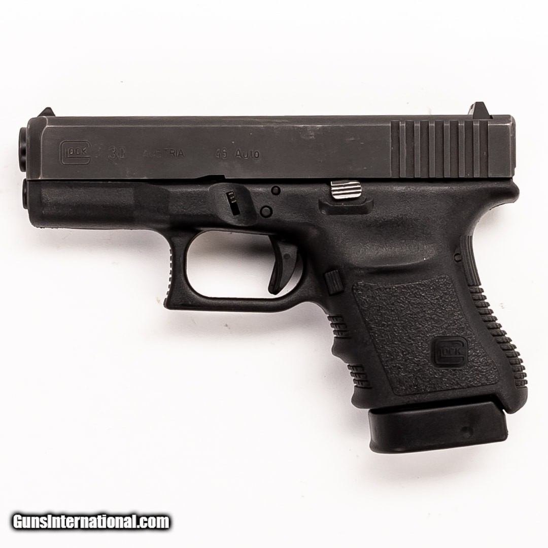 Description: Guns Listing ID: 346611 Sub-compact, semi-automatic, and chambered in the powerful 45 ACP, this Glock 30 Gen 3 is well-suited for self-defense. Also known as the G30, it is a popular choice among law enforcement personnel. The modular backstrap design ensures a comfortable fit for the user, while a built-in accessory rail makes for the easy addition of a flashlight or laser. This handgun comes with two 10-round magazines. SOLD Manufacturer: GLOCK Model: G30 GEN3 Caliber Info: .45 ACP Condition: Used - Certified Barrels: 3.75 BARREL Finish: BLACK |