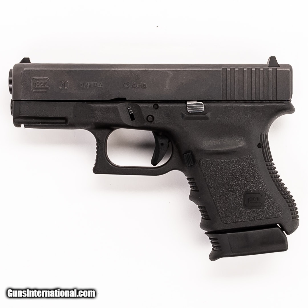 Description: Guns Listing ID: 369682 For sale is a Glock 30S chambered in 45 ACP. It makes an excellent self-defense sidearm that is easy to conceal while packing a considerable punch. This G30S Gen 3 is in excellent condition! It comes with the original case, manual, four 10-round magazines, and a right-handed OWB holster. SOLD Manufacturer: GLOCK Model: G30 Caliber Info: .45 ACP Condition: Used - Certified Barrels: 3.8 BARREL Finish: BLACK |