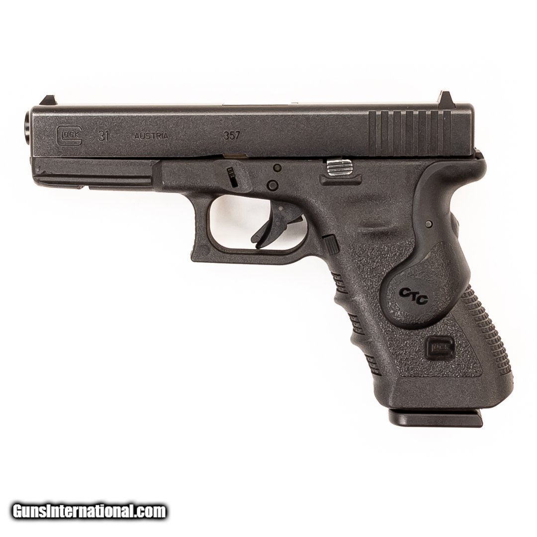 Description: Guns Listing ID: 1341606 This G31 features standard Glock sights and a CTC grip red laser sight. The original case and two 15-round Glock magazines are included. Get the best bang for your buck when you get a Certified Used Firearm . When you see the Certified Used stamp on any of our firearms, you can be confident that you‚‚re getting exactly what you want – a gun only in very good to excellent condition and held to the highest quality standard. All Certified Used Guns come with a ‚‚no questions asked‚‚ return policy . PLUS, ALL CERTIFIED USED GUNS SHIP FR SOLD Manufacturer: GLOCK Model: 31 Caliber Info: .357 SIG Condition: Used - Non-Certified Barrels: 4.5 BARREL Finish: BLACK |