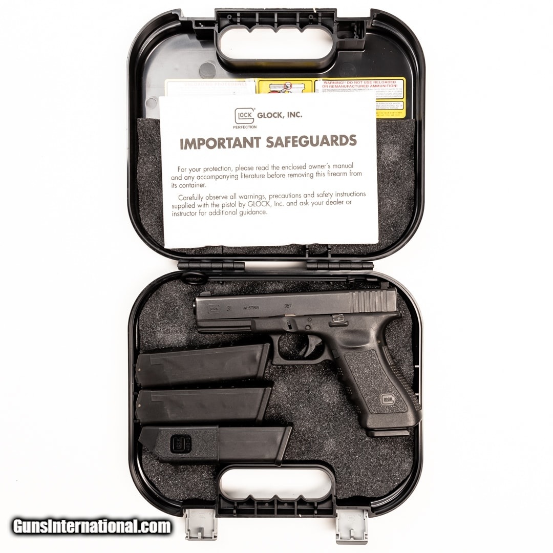 Description: Guns Listing ID: 882916 The Glock 31 delivers superior precision alongside a reliable and lightweight design with a large magazine capacity. The built-in rail makes for easy mounting of accessories, while the modular backstrap system provides the option to customize the grip to fit the user’s hand size properly. This G31 Gen 3 has old night sights. Purchase includes the original case, manual, four 15-round magazines, and a loader. Get the best bang for your buck when you get a Certified Used Firearm . When you see the Certified Used stamp on any of our firearms, you can be confident that you’re getting exactly what you want – a gun only in very good to excellent condition and held to the highest quality standard. All Certified Used Guns come with a ‘no questions asked’ return policy . PLUS, ALL CERTIFIED USED GUNS SHIP FREE! SOLD Manufacturer: GLOCK Model: G31 GEN 3 Caliber Info: .357 SIG Condition: Used - Certified Barrels: not specified Finish: BLACK |