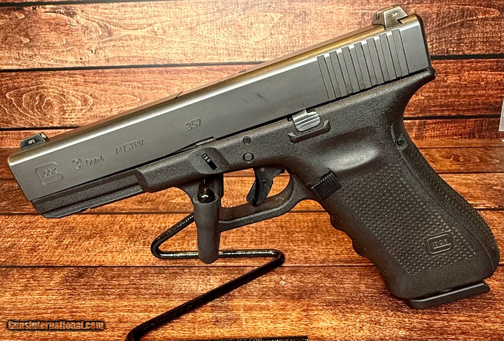 Description: Guns Listing ID: 508940 Presenting the Glock 31 Gen 4 - a semi-automatic pistol that brings a harmonious blend of performance, precision, and power. This exceptional piece of Austrian craftsmanship offers a unique combination of robust durability and agile functionality, making it a prized possession for any gun enthusiast or collector. The Glock 31 Gen 4 is in excellent condition, showing only faint traces of handling. The bore is immaculate with a clean, mirror finish, and little signs of wear. The rifling is sharp, hinting at the superior precision that this gun is capable of delivering. Originally launched in the late 90s, Glock 31 Gen 4 is a testament to Glock‚‚s continuous efforts to improve and innovate. It is chambered in .357 SIG, a caliber designed to emulate the performance of the venerable .357 Magnum in a semi-automatic platform. The striker-fired action enhances safety, while the high capacity of 15+1 rounds ensures you‚‚re well-prepared for any situation. The black finish adds to the aesthetics and durability of the pistol, and it comes with an original Glock case for secure storage and transport. With this purchase, you will receive an owner‚‚s manual, a Glock cleaning kit, and a speed loader housed in its original factory case. The package also includes two (2) 15-round magazines. The Glock 31 Gen 4 is lightweight, reliable, and offers high muzzle velocity and superior precision. Also included is a Glock two Pistol Range Bag with dual padded compartments provide protection and easy access to two handguns. Also features five (5) internal magazine holders and a center compartment for ammo and range tools. Embrace the opportunity to own a piece of Glock‚‚s history, a weapon that combines high firepower, reliability, and excellent design in a single package. Specifications: Manufacturer Glock Model 31 Submodel Gen4 Caliber .357 SIG Overall Condition Excellent Bore Condition Excellent Action Striker Capacity 15 + 1 Barrel Length 4.49\" Finish Tenifer Stock/Grips .357 SIG Sight/Optic Fixed Front Dovetailed R SOLD Manufacturer: GLOCK Model: G31 GEN 4 Caliber Info: .357 SIG Condition: Used - Non-Certified Barrels: 4.49 Action: SEMI AUTOMATIC Finish: black |