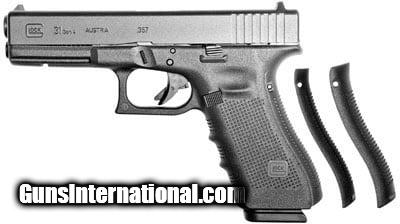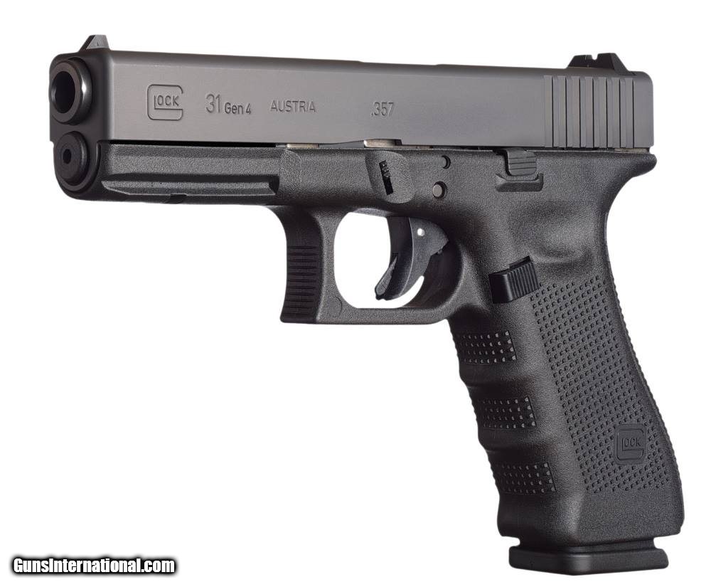 Description: Guns Listing ID: 50393 The Glock G31 Gen 4 is a polymer framed pistol with a built in accessory rail. Featuring interchangeable back straps the grip of the G31 Gen 4 is stippled to reduce slippage while also having finger groves and thumb rests to aid in this effort. Chambered in 357 SIG the G31 Gen 4 has a 151 capacity and a reversible magazine catch. With a barrel length of 4.48 the Glock G31 Gen 4 weighs just 33.2 ounces when loaded. Details The GLOCK 31 Gen4 in .357 introduces revolutionary design changes to the pistol thats been the optimum solution for those seeking high muzzle velocity and superior precision in a reliable yet lightweight pistol with large magazine capacity. The Modular Back Strap design lets you instantly customize its grip to adapt to an individual shooters hand size. The surface of the frame employs the new scientifically designed real-world-tested Gen4 rough textured technology. Internally the new GLOCK dual recoil spring assembly substantially increases the life of the system. A reversible enlarged magazine catch changeable in seconds accommodates left or right-handed operators. The G31 Gen4 .357 retains the GLOCK accessory rail for your attachments. - Length 202 mm 7.95 in. - Width 30.00 mm 1.18 in. - Length Between Sights 165 mm 6.49 in. - Height 138 mm 5.43 in. - Barrel Height 32 mm 1.26 in. - Barrel Length 114 mm 4.48 in. - Weights Unloaded 740 g 26.12 oz.-Loaded 940 g 33.18 oz. - Trigger Pull 2.5 kg 5.5 lbs. - Trigger Travel 12.5 mm 0.49 in. - Barrel Rifling right hand hexagonal - Length of Twist 250 mm 9.84 in. - Magazine Capacity Standard 15 Optional 10 BLACK FINISH SOLD Manufacturer: GLOCK Model: G31 GEN 4 Caliber Info: .357 SIG Condition: new Barrels: 4.5 BARREL |