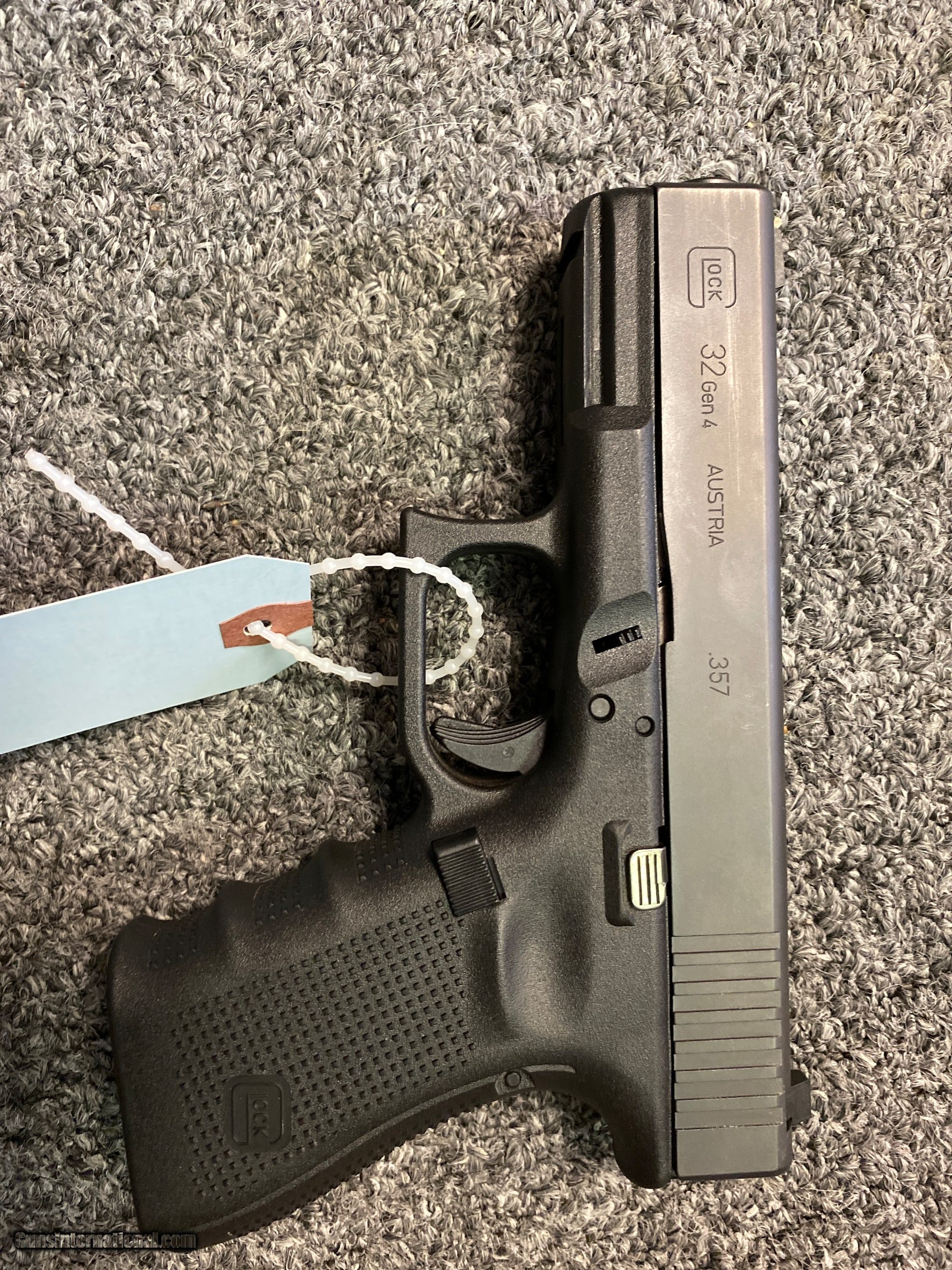 Description: Guns Listing ID: 632436 Comes with iwb holster and 5 magazines. Also has night sights. SOLD Manufacturer: GLOCK Model: G32 GEN 4 Caliber Info: .357 SIG Condition: Used - Non-Certified Barrels: 4" barrel |