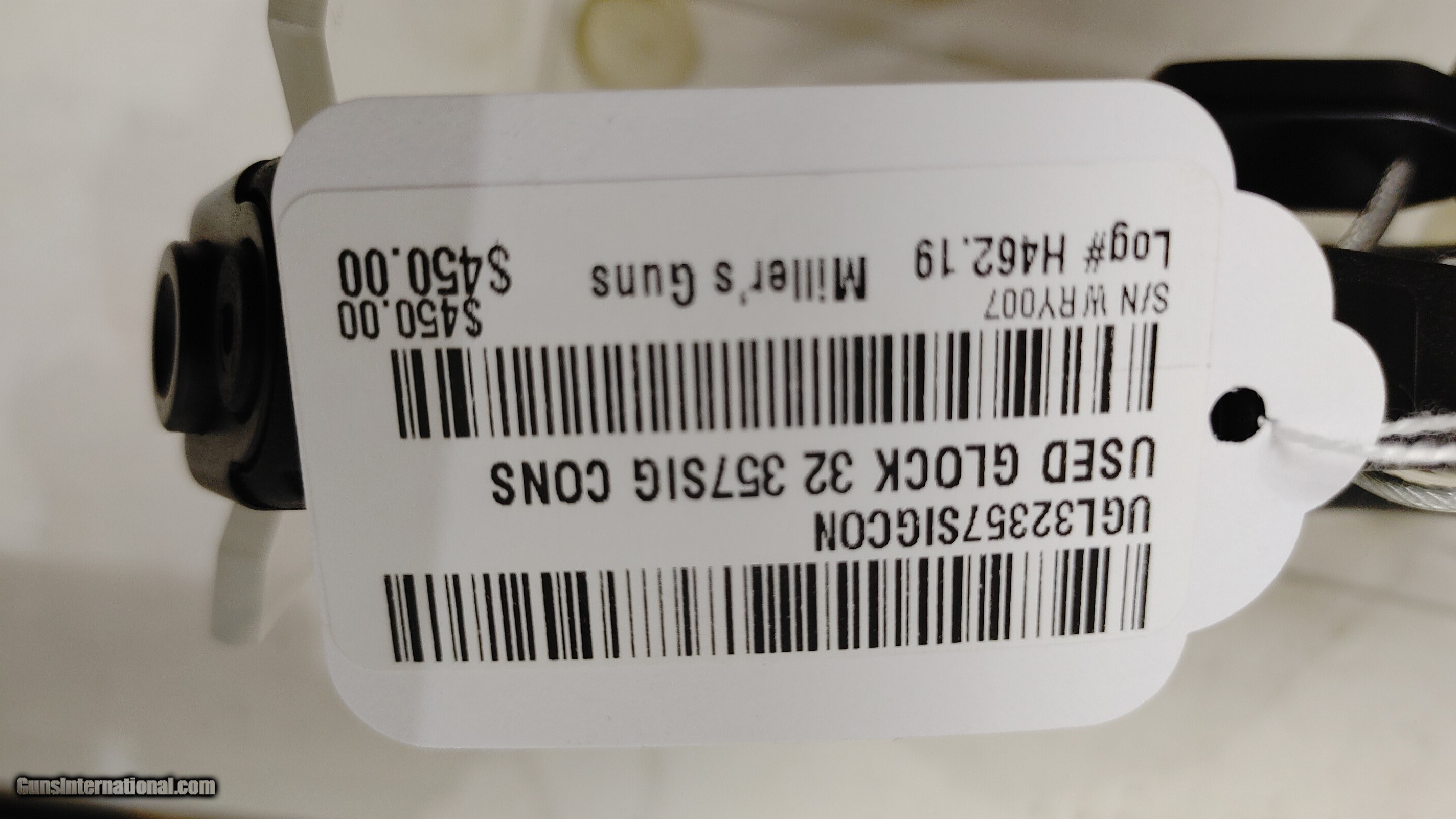 Description: used GLK 32 GEN4 357 PST 10RD FS hard plastic case good condition (CALIBER:357SIG); (MAG CAPACITY:10+1); (MODEL SERIES:32); (CAPACITY:10+1); (FINISH:BLACK MATTE); (SIGHTS:FT: WHITE DOT RR: WHITE OUTLINE); (OVERALL LENGTH:6.85); (FEATURES:MAGAZINE LOADER/ CLEANING ROD AND BRUSH); (GUN TYPE:PISTOL: SEMI-AUTO); (ACTION:SAFE ACTION); (BARREL LENGTH:4.02); (DEPT:HANDGUN) Buyer pays shipping Millers Gun Center Located in New Castle, Delaware "Home of TAX-Free shopping" No Credit Card Fees Send Gun international inquiry and then call 302-328-9747 to complete your purchase SOLD Serial Number: WRY007 |