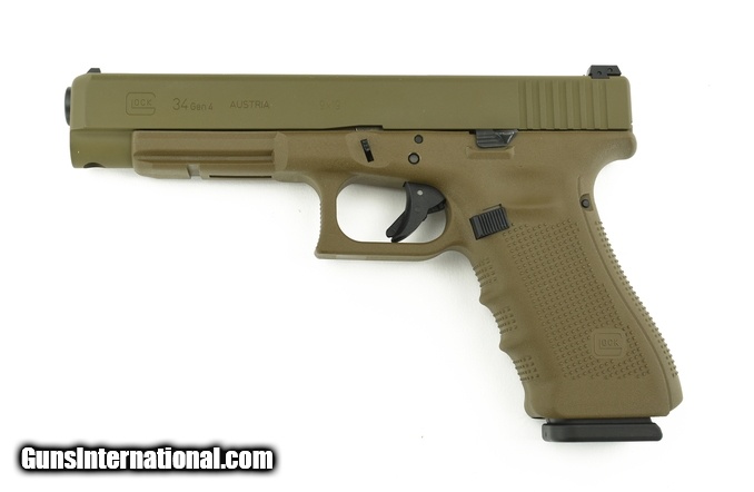 Description: Glock 34 Gen 4 9mm caliber pistol. Target model with FDE finish in excellent condition with box and two extra magazine.