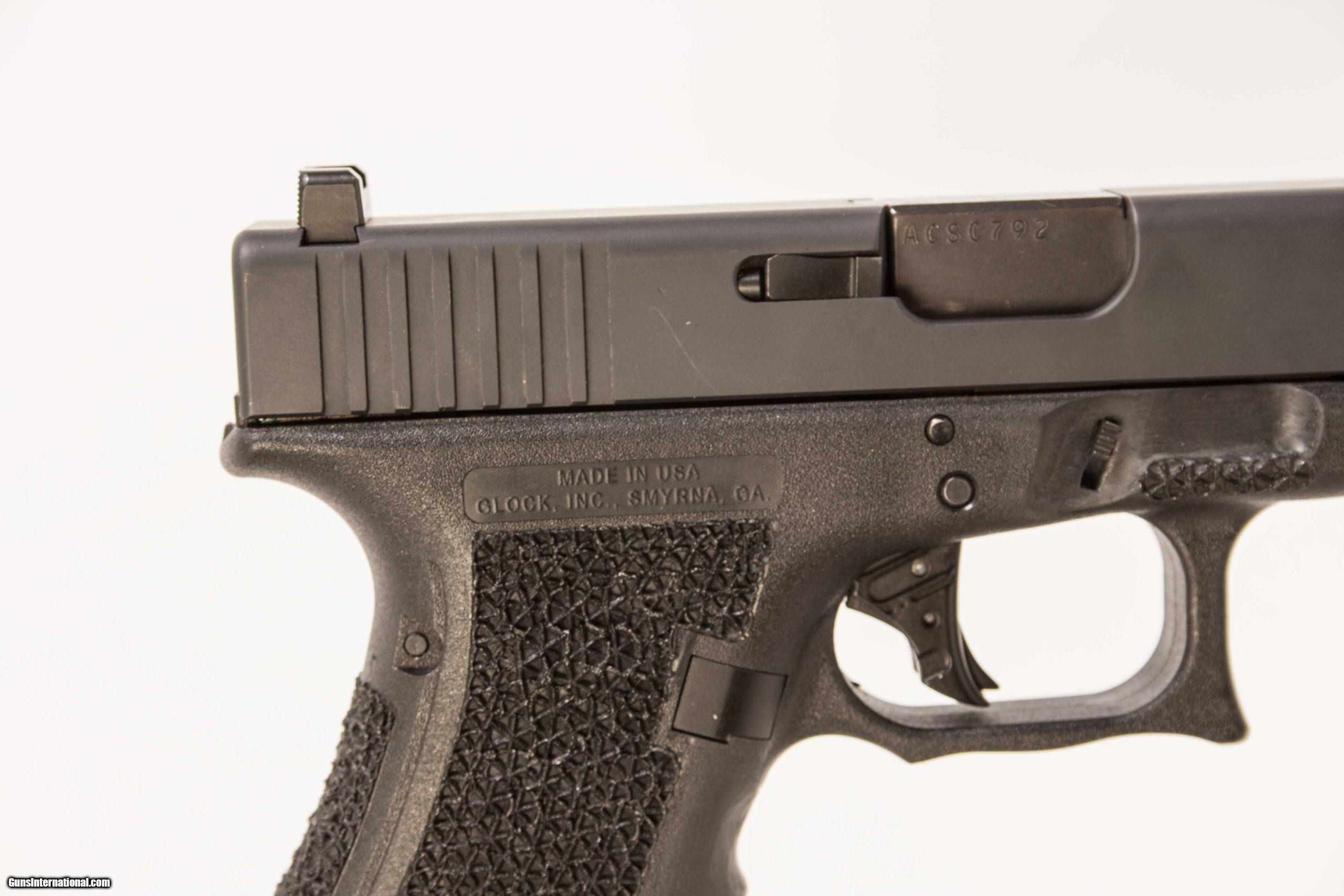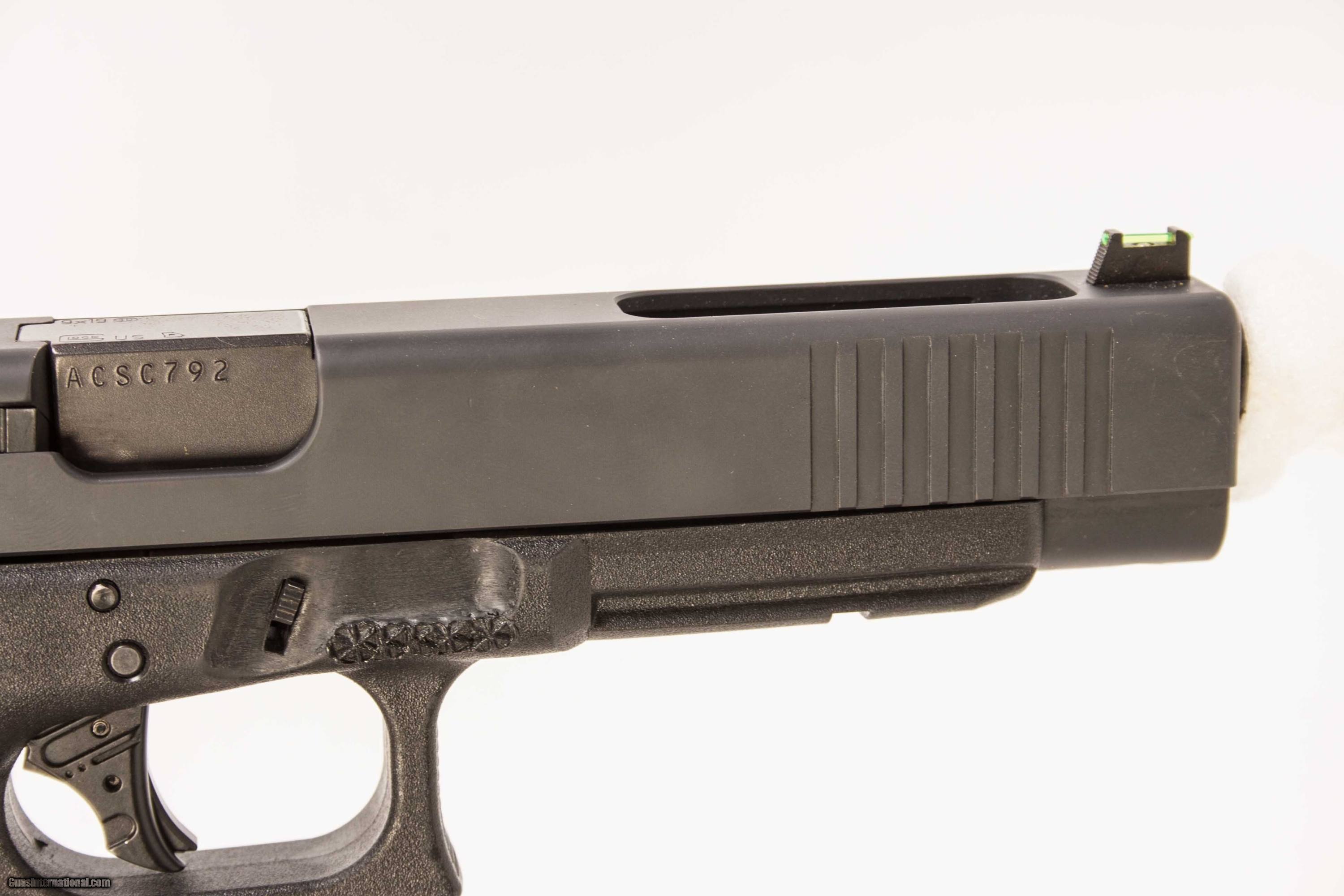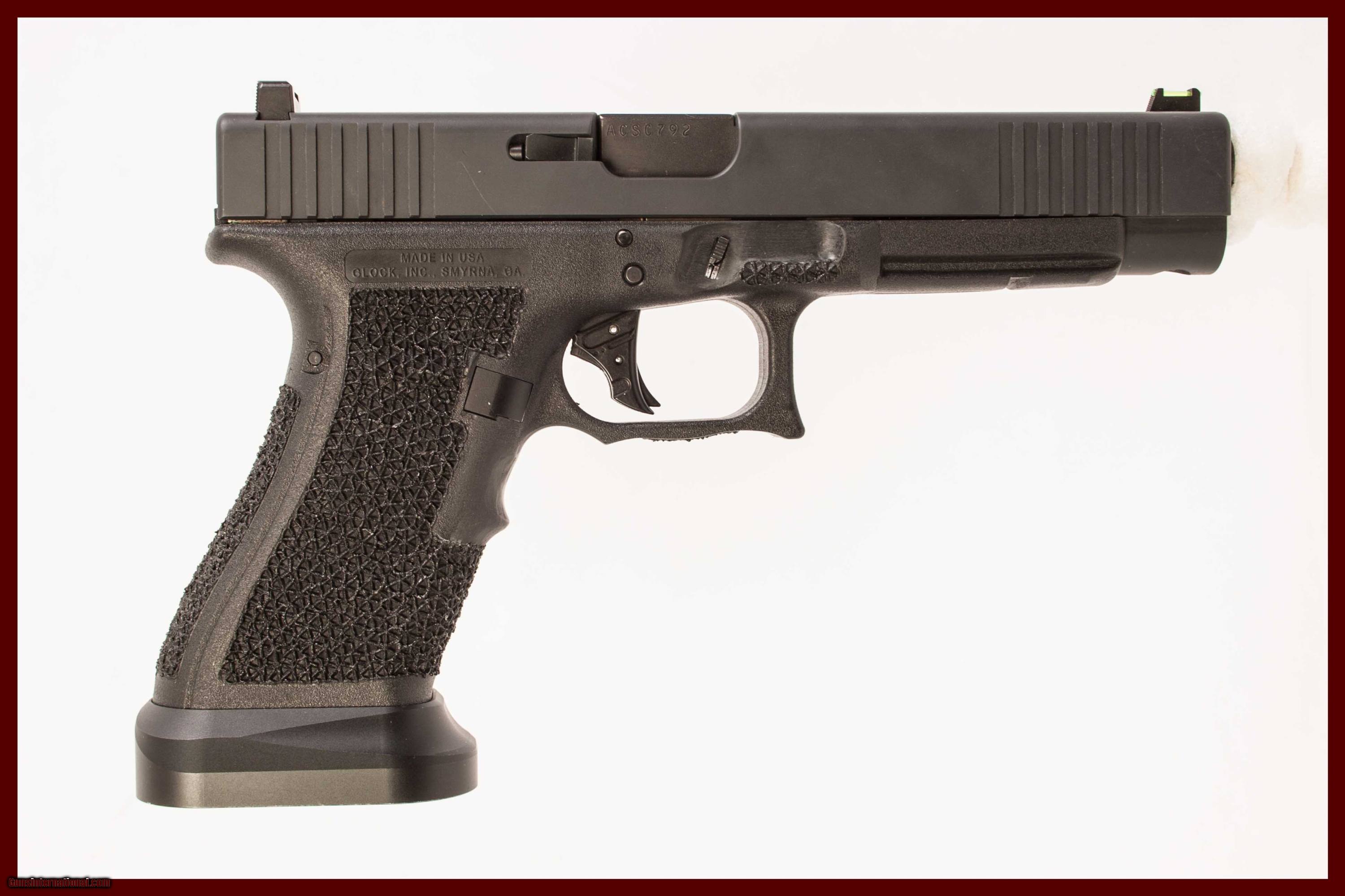 Glock 34 chambered in 9mm with a 5 1/4 inch barrel ported slide original case and a stimpled frame. This gun is in excellent condition and is covered by Dury's Lifetime Warranty.