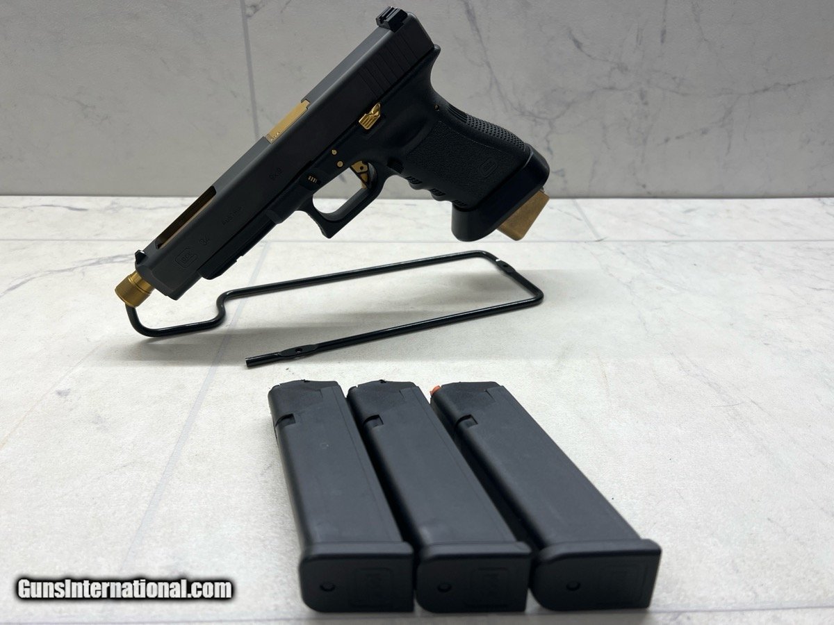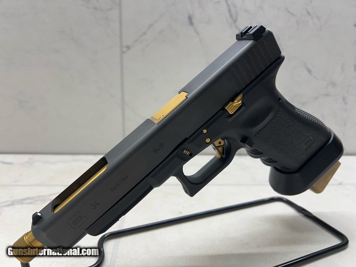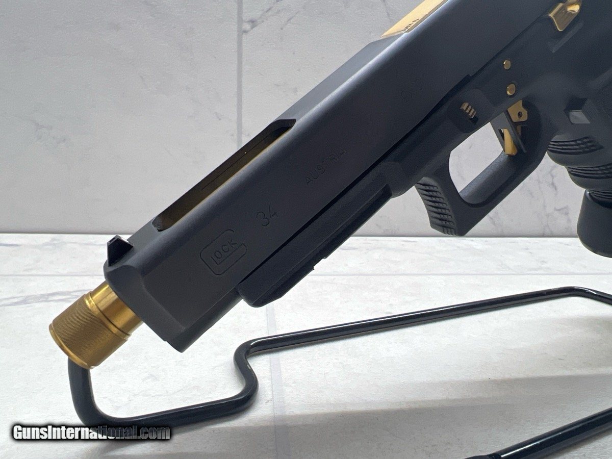 Description: Guns Listing ID: 402175 GLOCK MODEL 34 GEN 3, SEMI - AUTOMATIC, 9X19MM, BLACK (MATTE),INCLUDES ORIGINAL BOX, 6\" COMP BARREL, TRIGGER, MAG RELEASE, AND FLARED MAG WELL W/ COMP MAG AND THREE MAGS INVENTORY#PO1017529 OREGON PAWN LICENSE# PB-0445 SOLD Manufacturer: GLOCK Model: 34 GEN 3 Caliber Info: 9MM LUGER (9X19 PARA) Condition: Used - Non-Certified Barrels: 6 BARREL Finish: BLACK AND GOLD Weight: not specified |