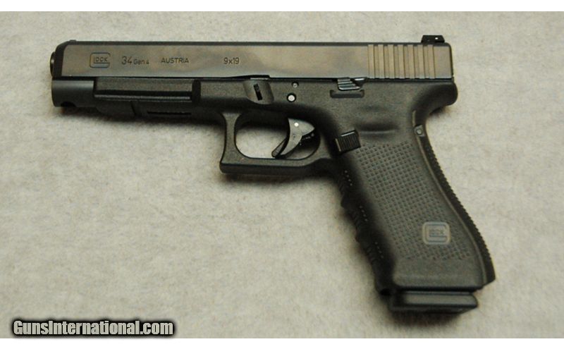 Description: Block Model 34 Gen 4 Pistol. Appears as new with 3 mags and hard case. Classic Glock polymer pistol design with a longer barrel - a great choice for target practice or handgun competitions. 9mm Luger SOLD Chambers: Semi auto Metal Condition: As new Bore Condition: Bright Barrels: 5 Triggers: Striker fired Butt Pad: Polymer frame with integral grip Sights: "White outline rear, white dot front sights Item Location: La Vista, NE |