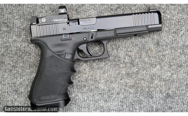 Description: For your consideration, a Glock 34 Gen 5 chambered in 9x19. Sighting consists of a set of suppressor-height irons and a Vortex Venom micro red dot optic. With its factory - connector, forward slide serrations, and optic-ready slide, the 34 Gen 5 is Glock's current premier 9x19 competition oriented offering. The frame is fitted with a Hogue HandALL Beavertail Grip Sleeve and a flared magazine well of unknown manufacture. 9mm Luger SOLD Metal Condition: Very Good+ Wood Condition: Excellent Bore Condition: Excellent Barrels: 5 Triggers: Smooth Face Fore End: Railed Weight: 1.75 lbs Sights: Irons and Red Dot Item Location: Hamburg, PA |