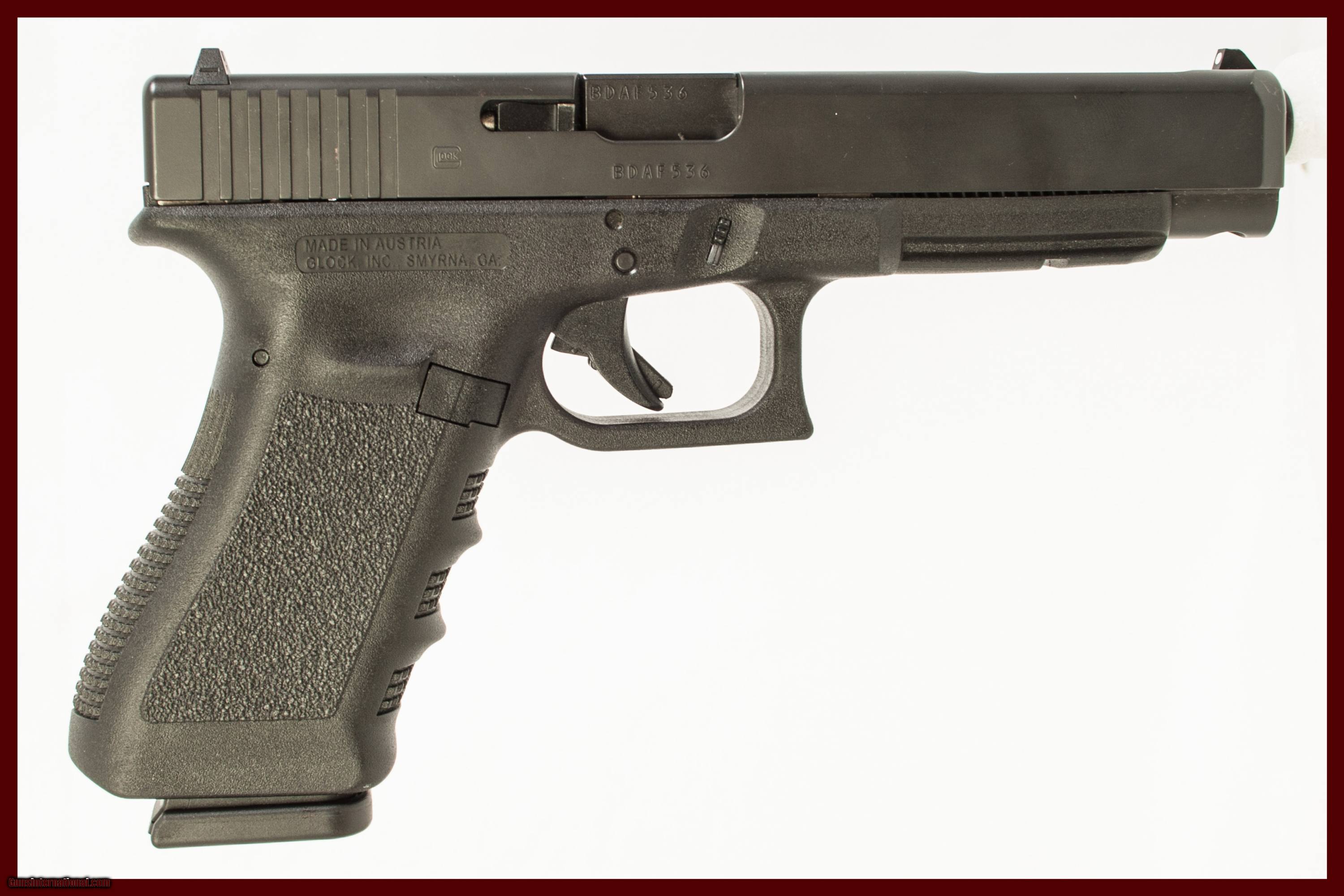 GLOCK 34 GEN3 CHAMBERED IN 9MM WITH A 5.25 INCH BARREL COMES WITH CASE. THIS GUN IS IN EXCELLENT CONDITION AND IS COVERED BY DURY'S LIFETIME WARRANTY.
