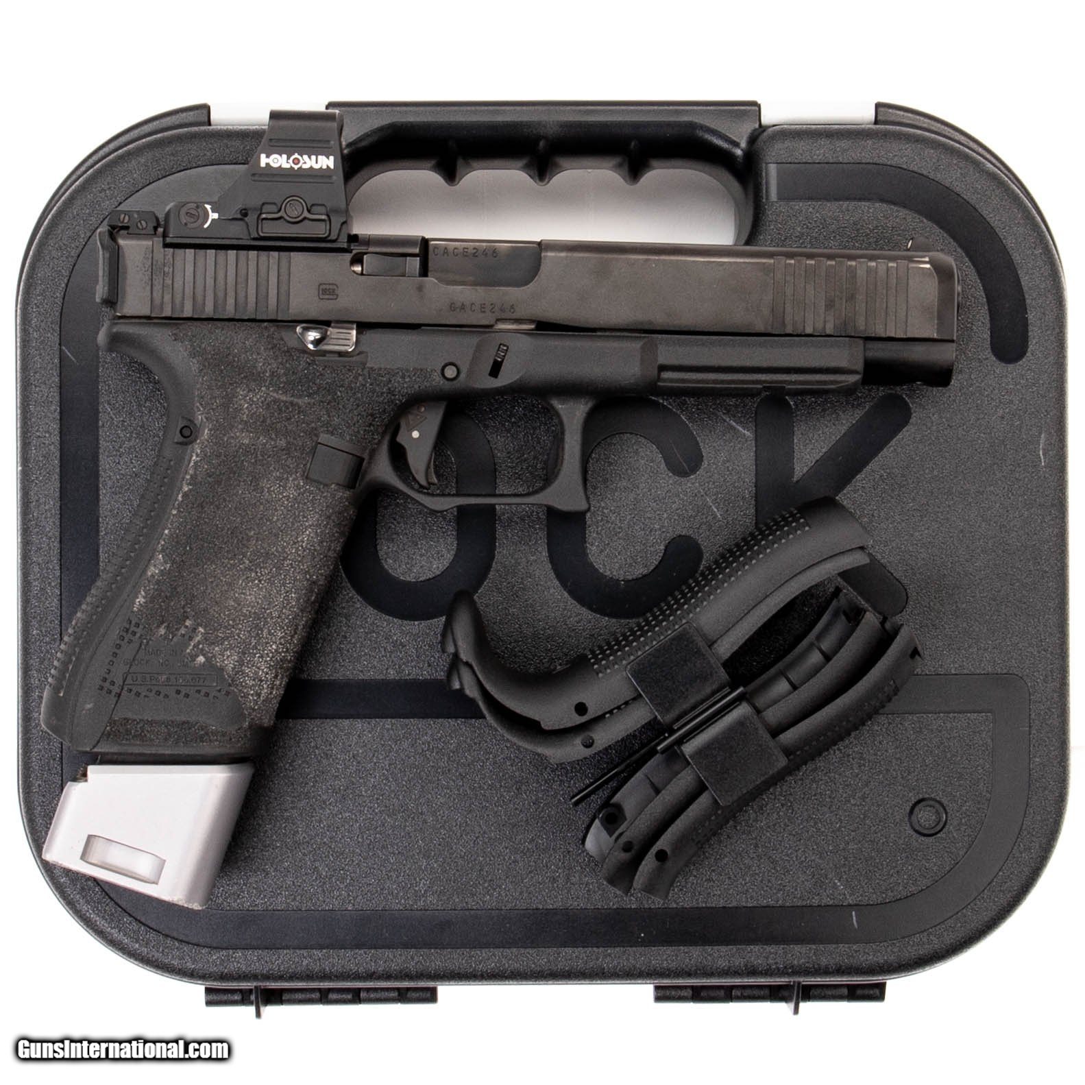 Description: Guns Listing ID: 485228 This Glock 35 comes with one extended 23-round magazine, an extra backstrap, grip tape, an aftermarket backplate, a double undercut trigger guard and is equipped with an extended magazine release, a custom trigger shoe and a Holosun HS507 COMP red dot optic. Get the best bang for your buck when you get a Certified Used Firearm . When you see the Certified Used stamp on any of our firearms, you can be confident that you’re getting exactly what you want – a gun only in very good to excellent condition and held to the highest quality standard. All Certified Used Guns come with a ‘no questions asked’ return policy . PLUS, ALL CERTIFIED USED GUNS SHIP FREE! SOLD Manufacturer: GLOCK Model: 34 GEN5 MOS Caliber Info: 9MM LUGER (9x19 PARA) Condition: Used - Certified Barrels: 5.30 Action: SEMI AUTOMATIC Finish: black Weight: 1.4 |