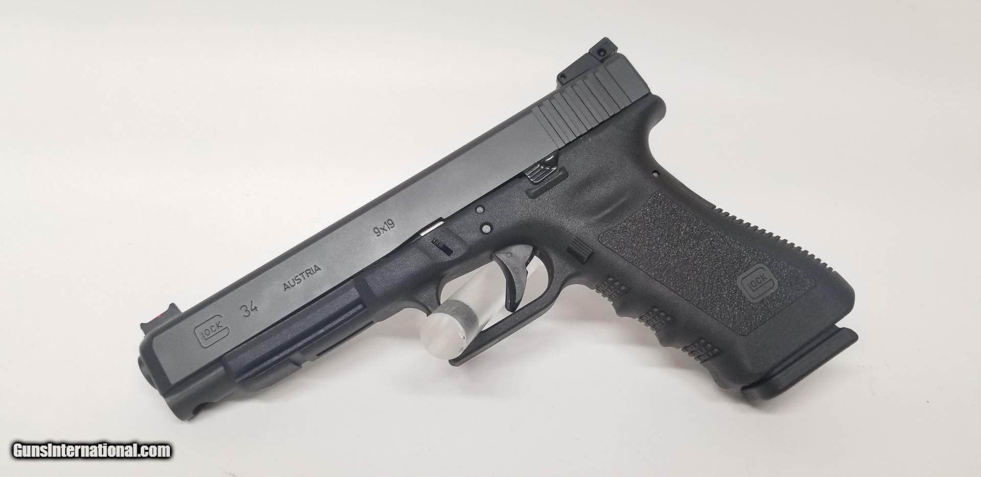 Description: Guns Listing ID: 664262 Glock 34 Gen 3 9x19mm, 5.3\" Barrel, Ported Slide, Adjustable Rear Sight, Fiber Optic Front Sight, 2 Mags, No Box SOLD Manufacturer: GLOCK Model: 34 Caliber Info: 9X19MM Condition: Used - Non-Certified Barrels: 5.3 BARREL |